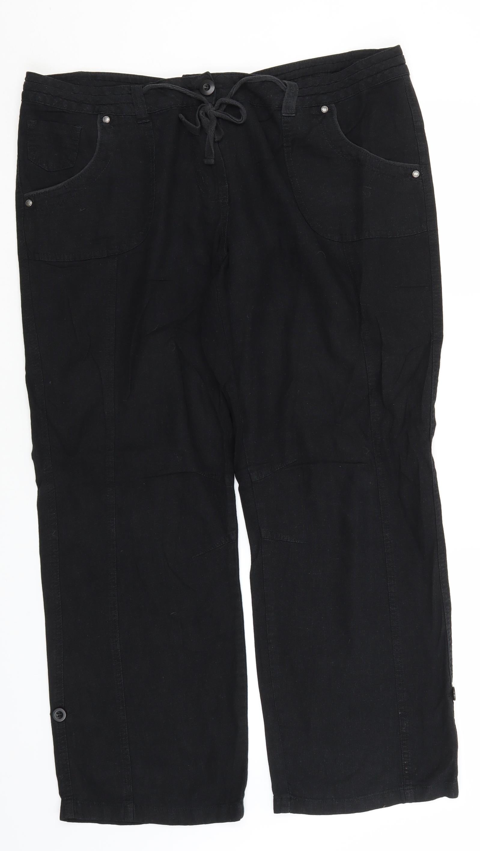 Authentic Womens Black Linen Trousers Size 16 L28 in Regular
