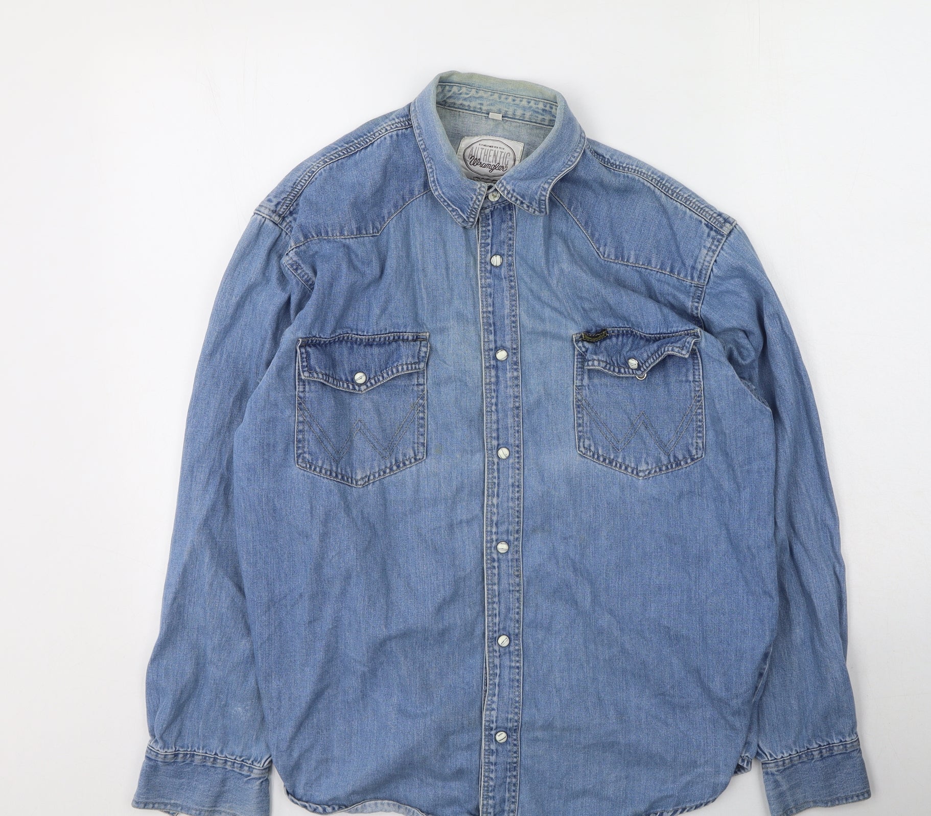 Authentic Womens Blue Cotton Basic Button-Up Size S Collared