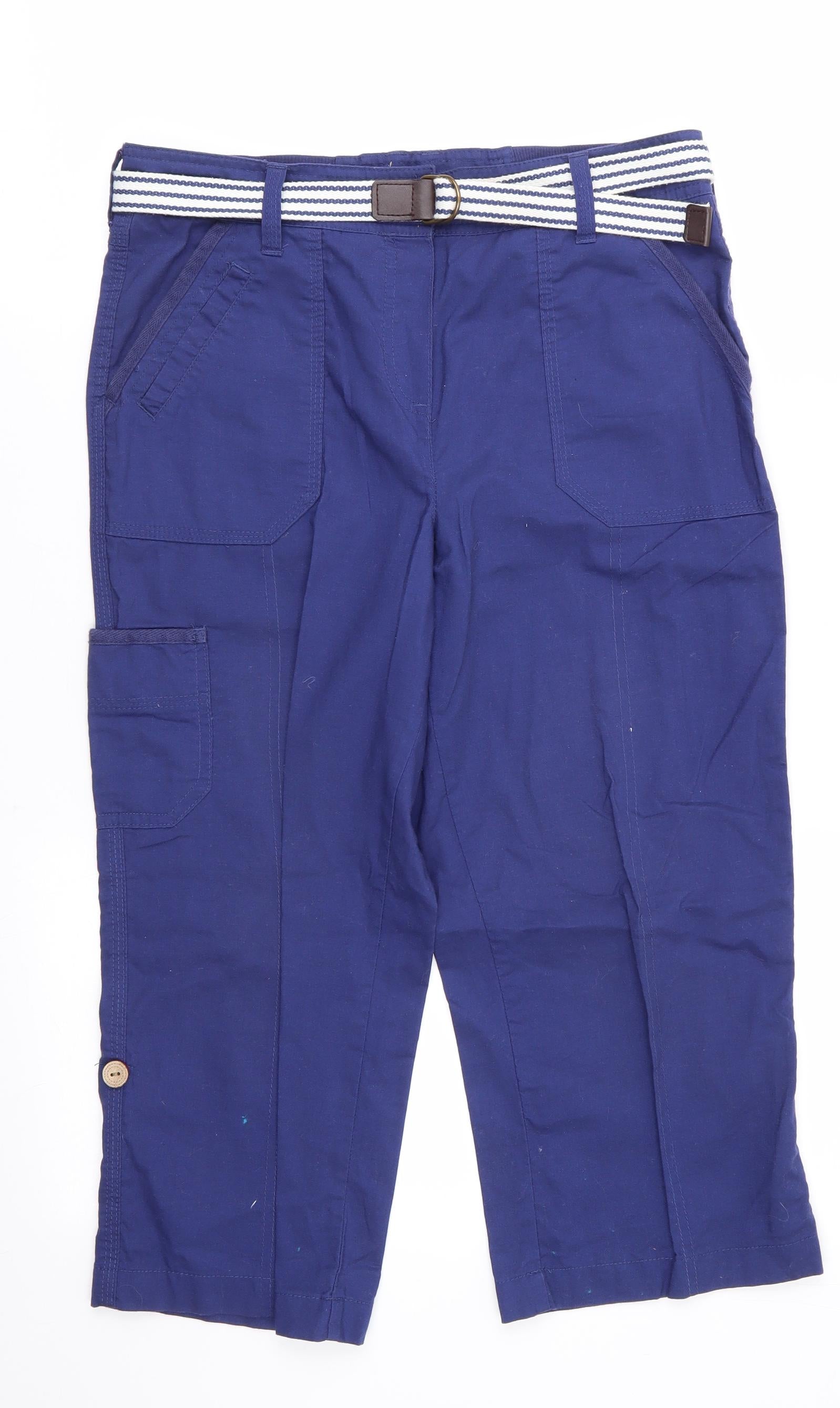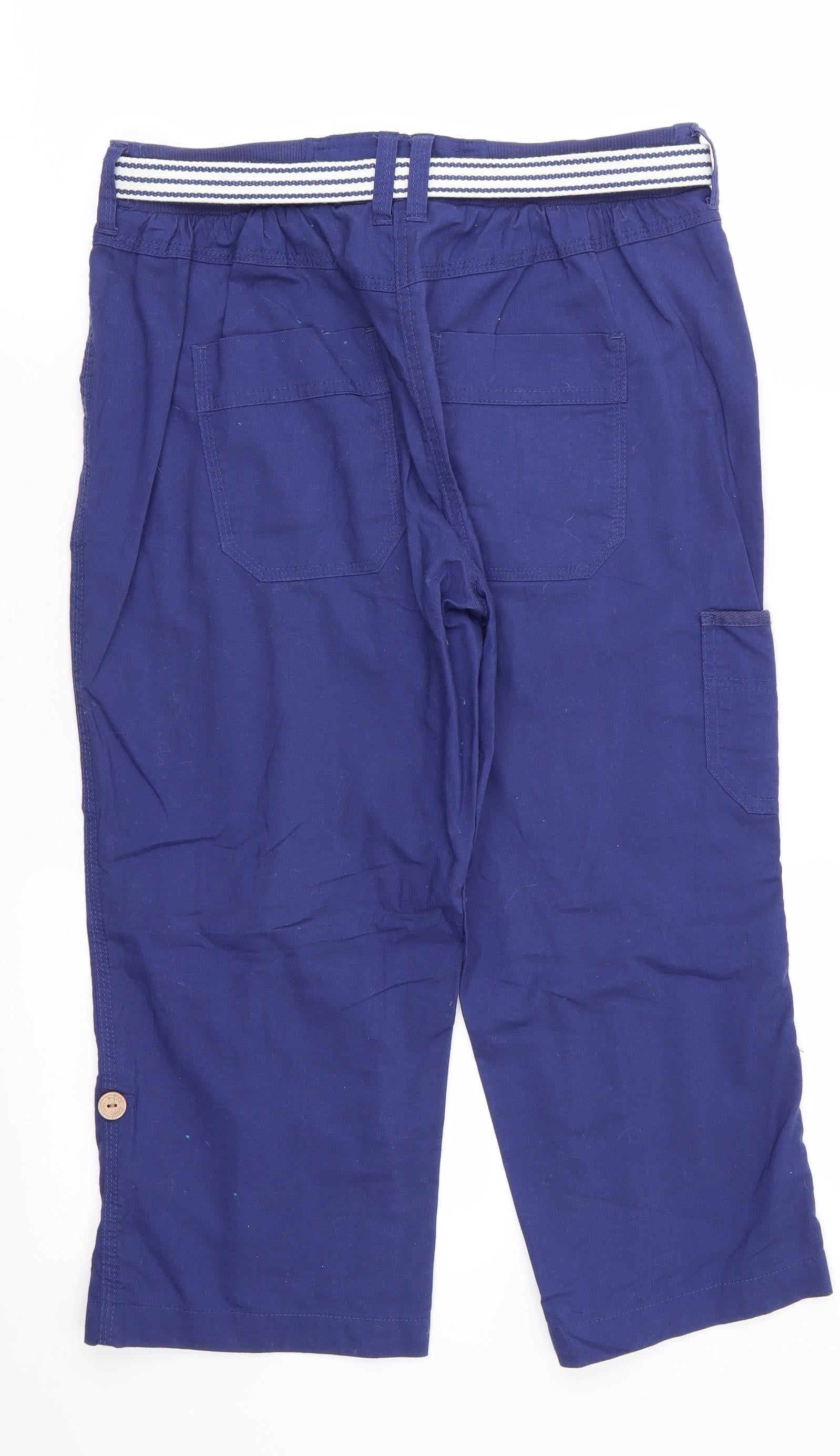 Authentic Womens Blue Cotton Cropped Trousers Size 8 L20.5 in Regular - Back Elastication Adjustable Length Leg