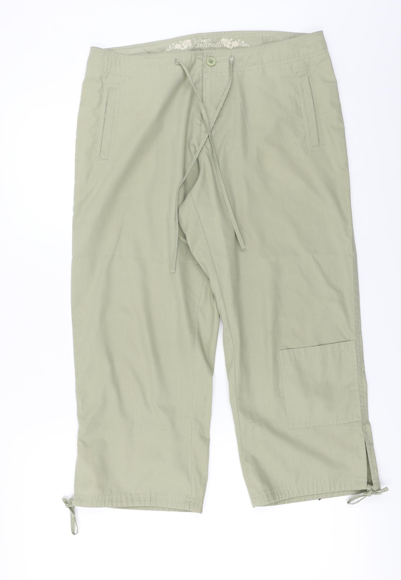 Authentic Womens Green Floral Trousers Size 10 L20 in
