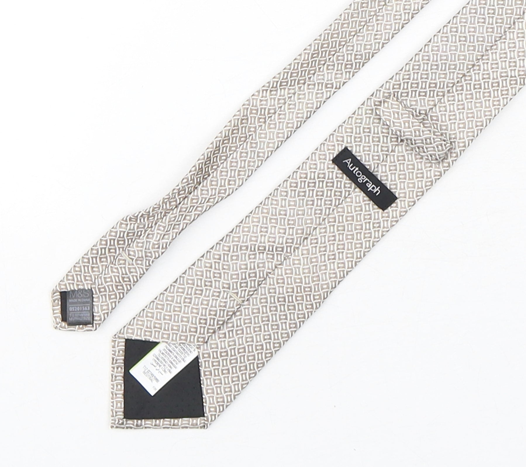 Autograph Mens Beige Geometric Silk Pointed Tie One Size