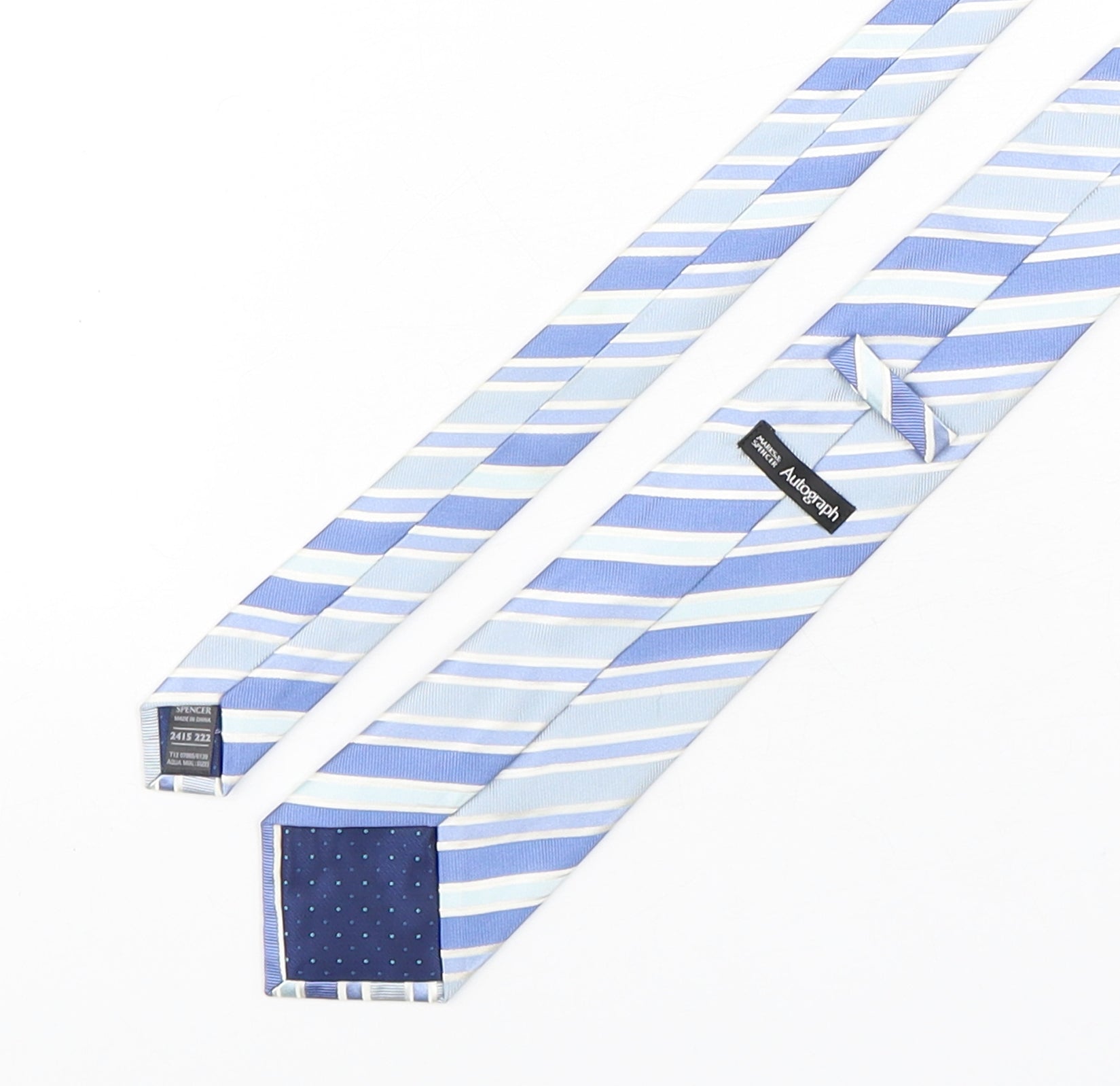 Autograph Mens Blue Striped Silk Pointed Tie One Size