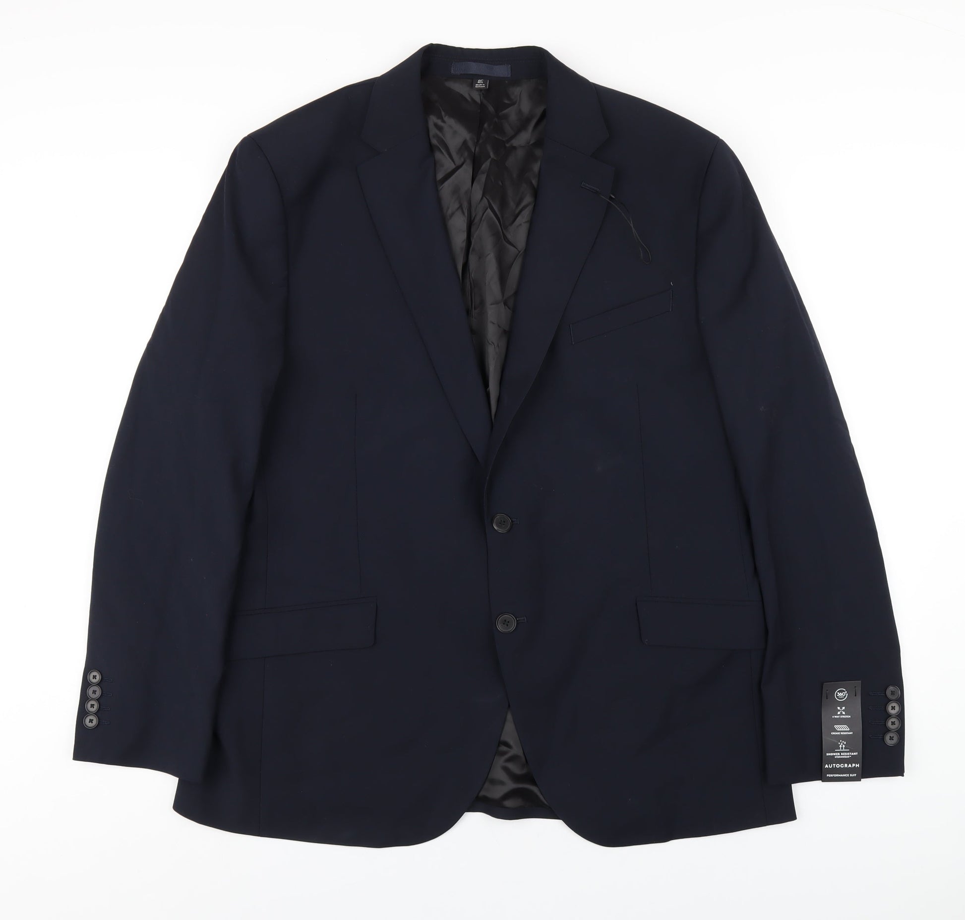 Autograph Mens Blue Wool Jacket Blazer Size 44 Regular