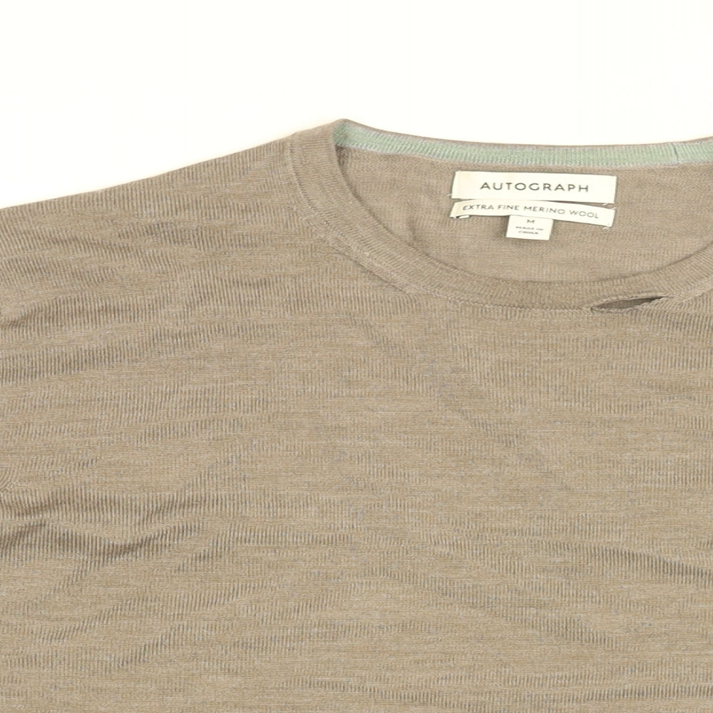 Autograph Mens Brown Round Neck Wool Pullover Jumper Size M Long Sleeve
