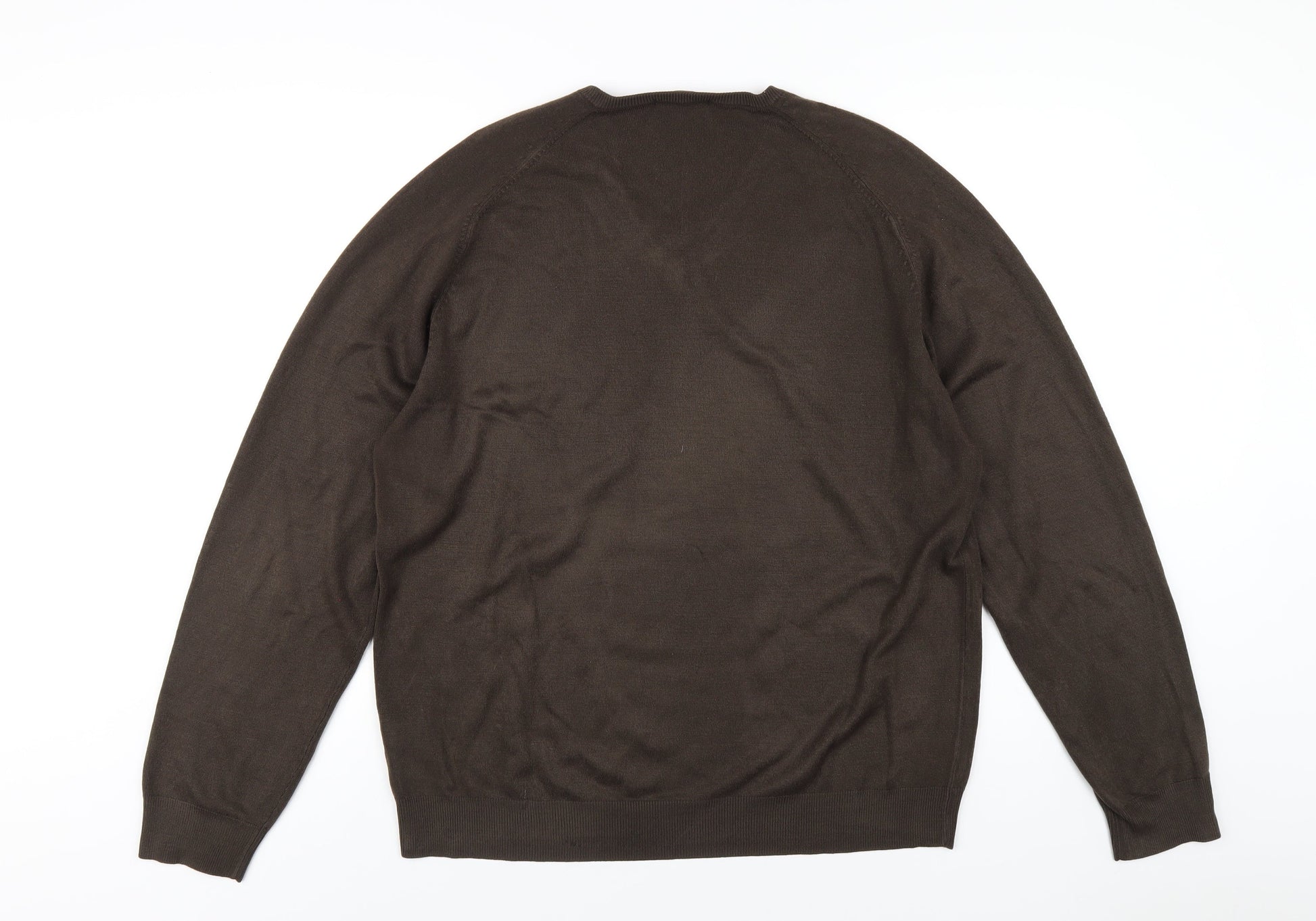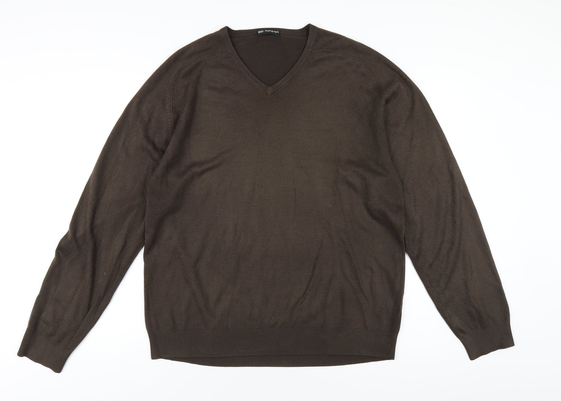 Autograph Mens Brown V-Neck Acrylic Pullover Jumper Size XL Long Sleeve