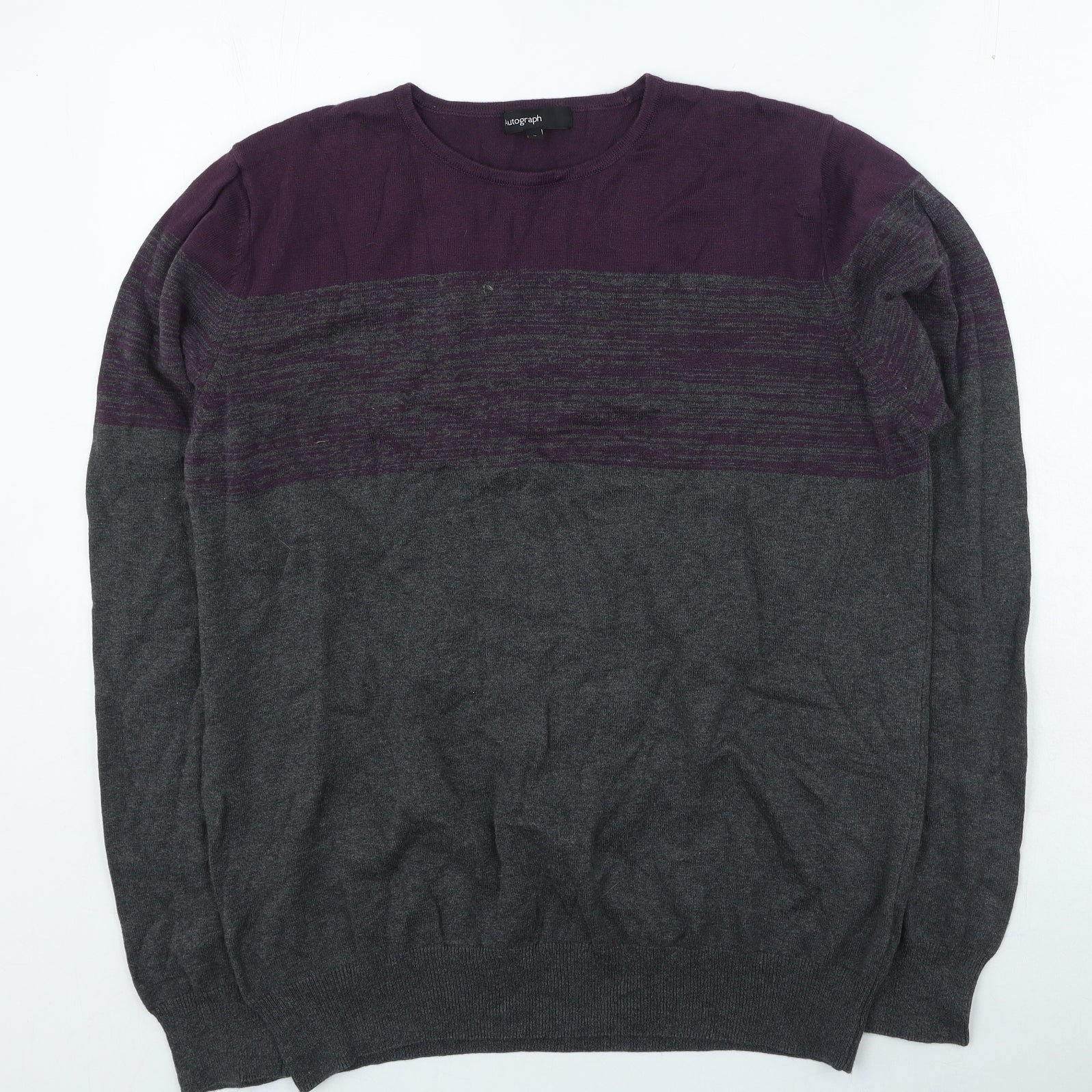 Autograph Mens Grey Round Neck Cotton Pullover Jumper Size L