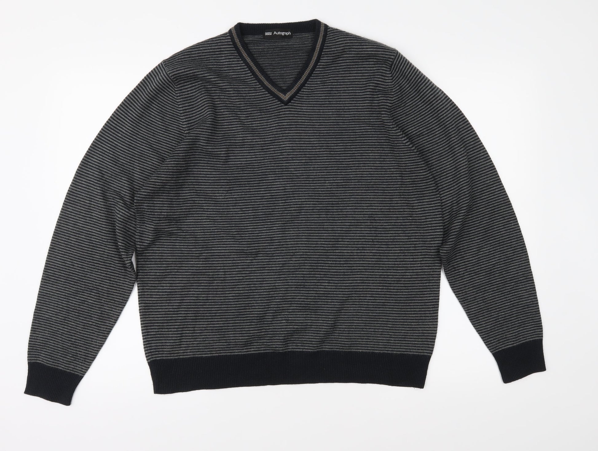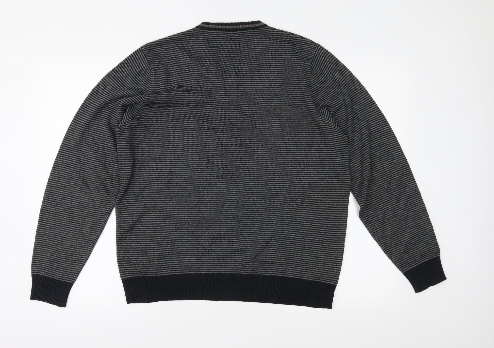 Autograph Mens Grey Striped Knit Pullover Jumper Size M