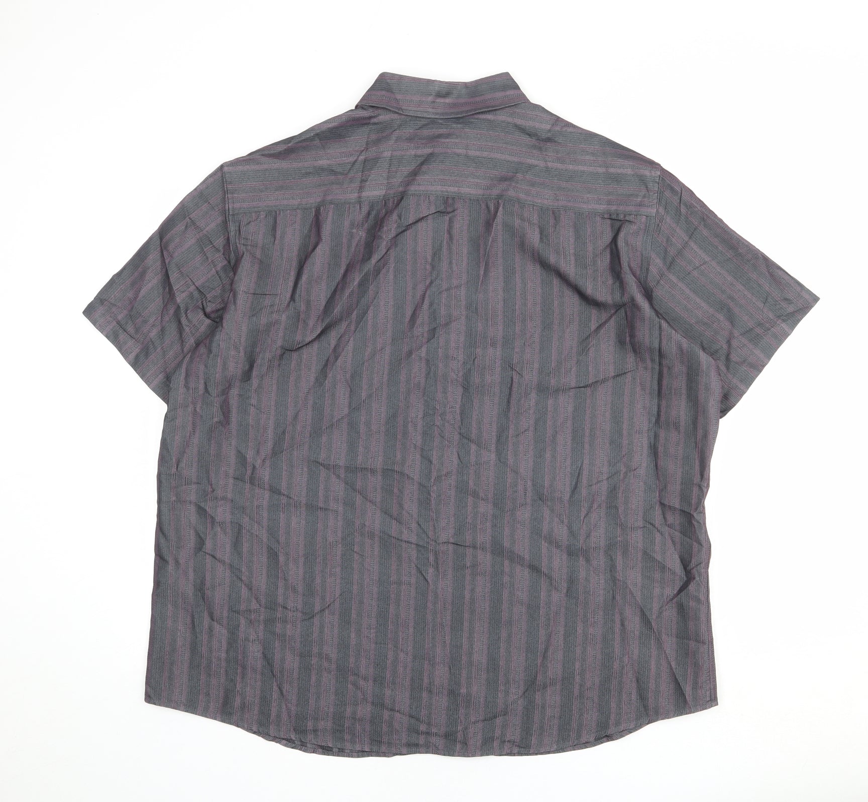 Autograph Mens Grey Striped Polyester Button-Up Size XL Collared Button