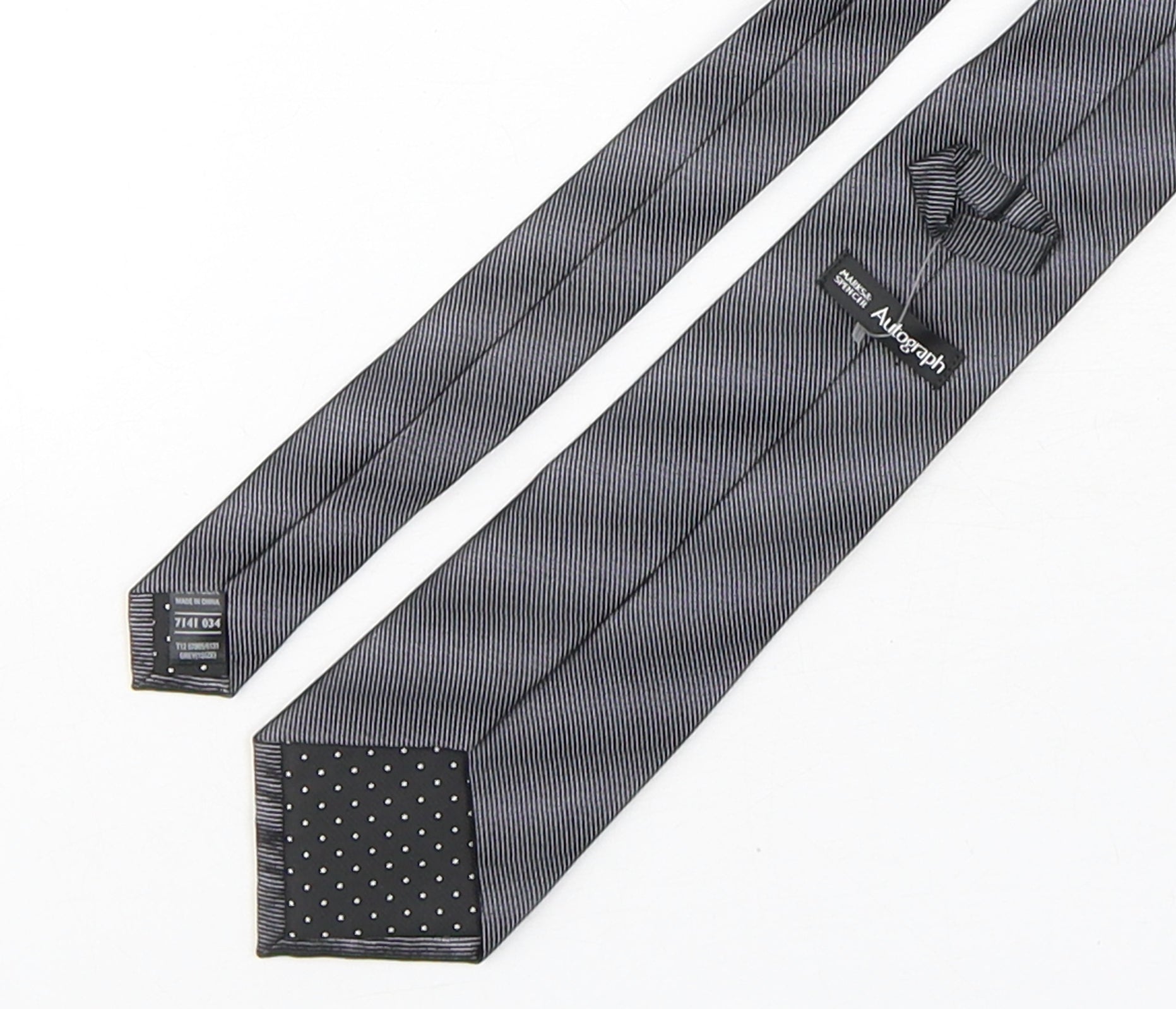 Autograph Mens Grey Striped Silk Pointed Tie One Size