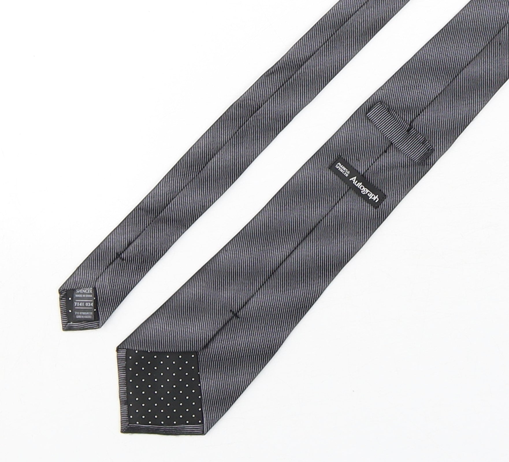 Autograph Mens Grey Striped Silk Pointed Tie One Size