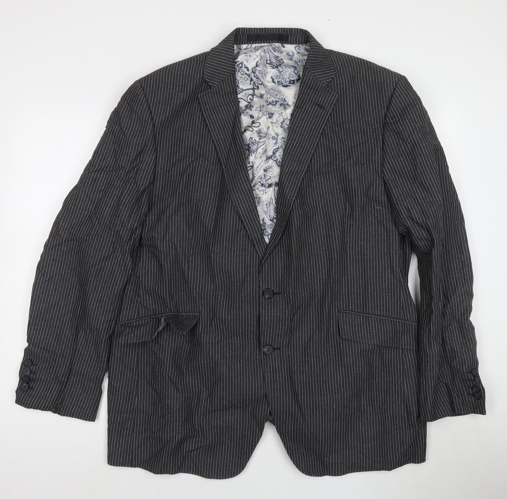Autograph Mens Grey Striped Wool Jacket Suit Jacket Size 46 Regular