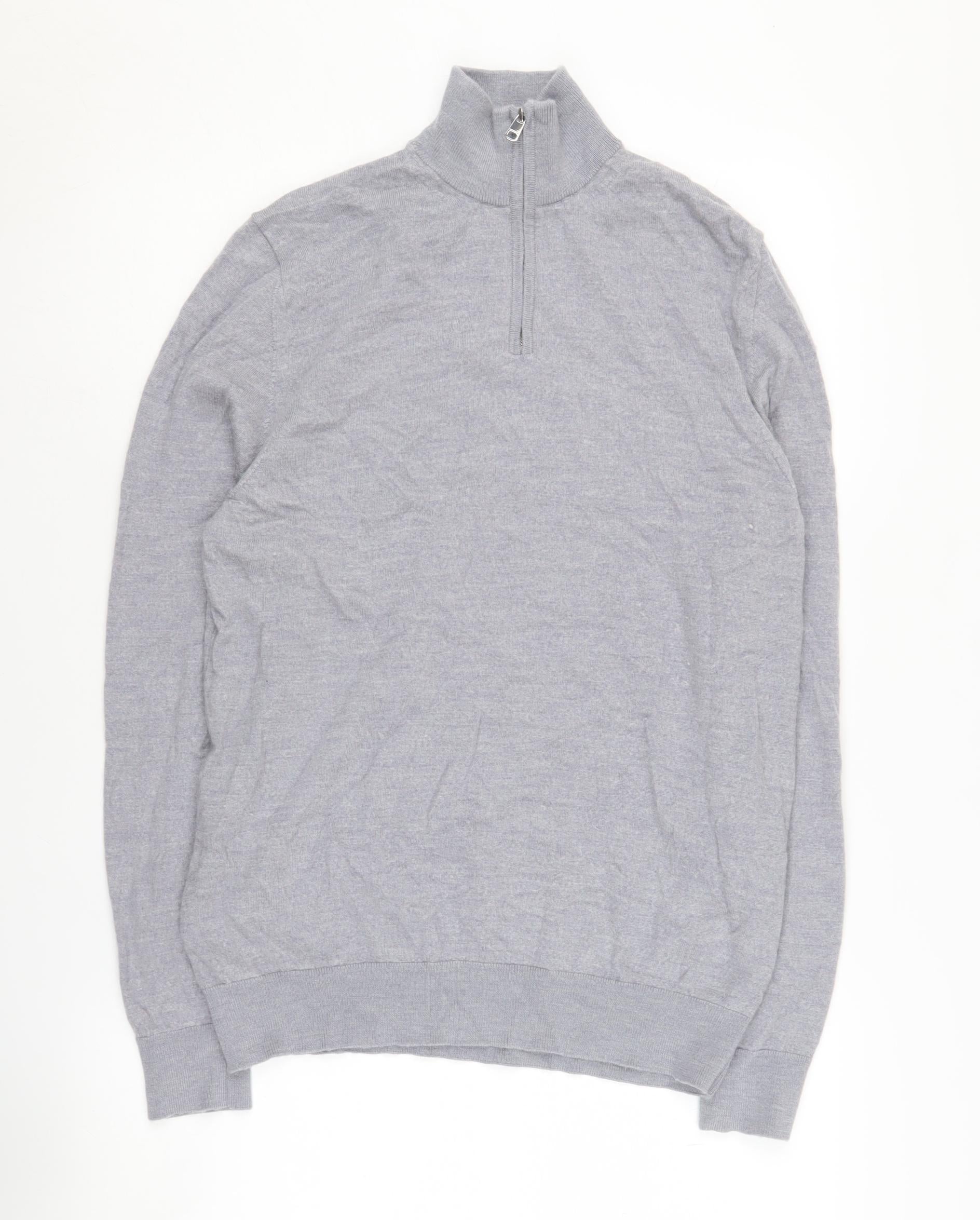 Autograph Men's Grey Wool Jumper, Medium, 1/4 Zip