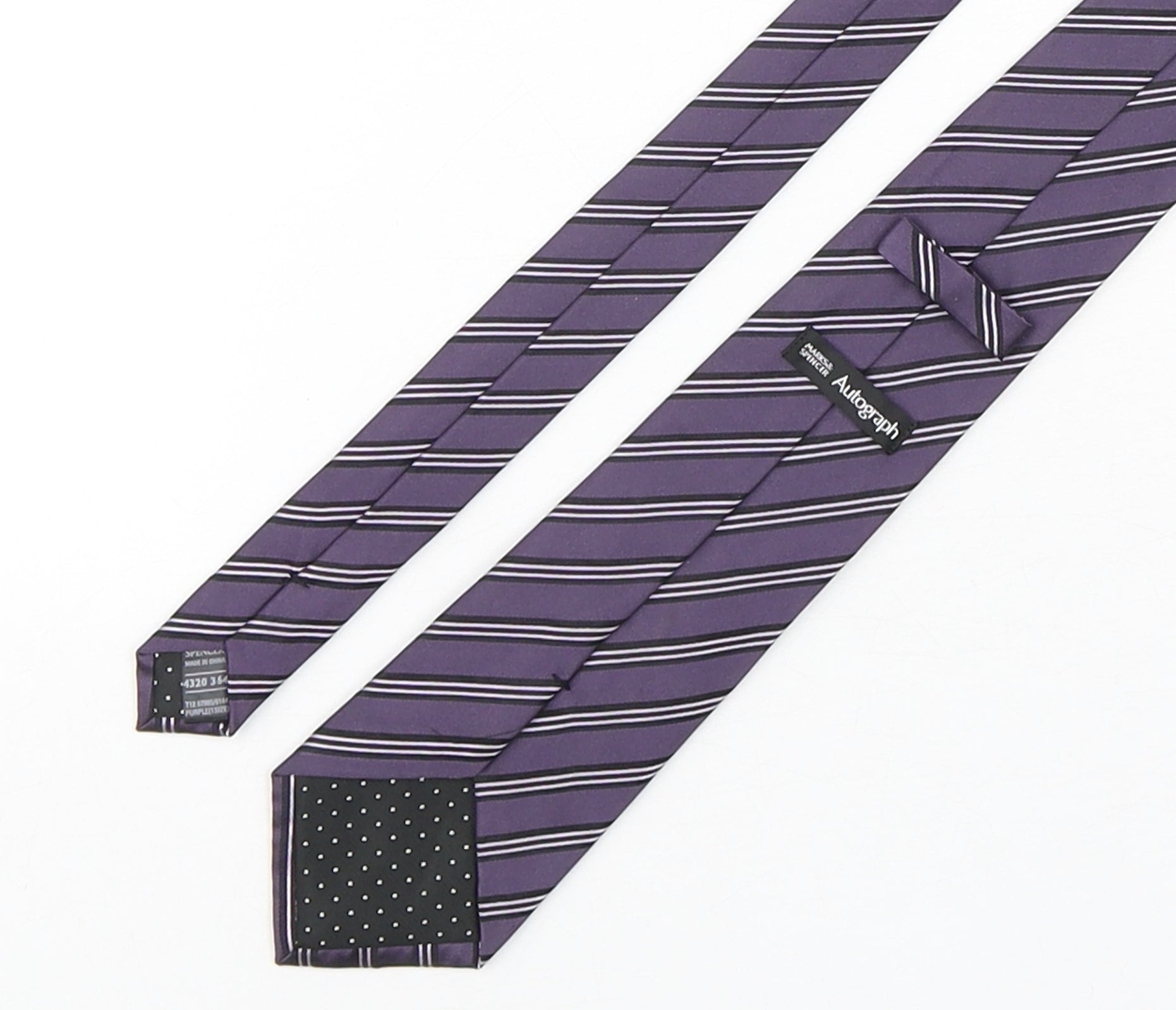 Autograph Mens Purple Striped Silk Pointed Tie One Size