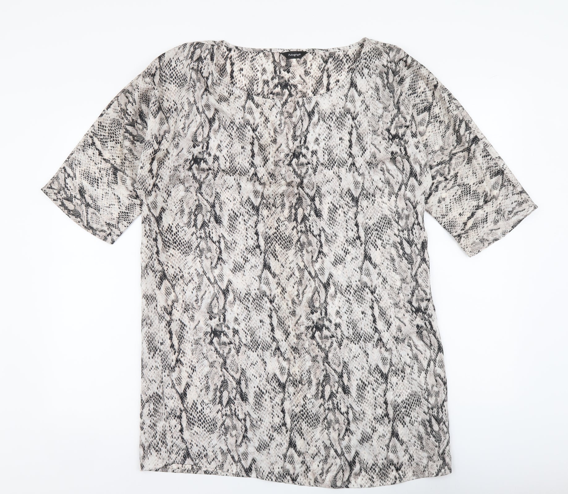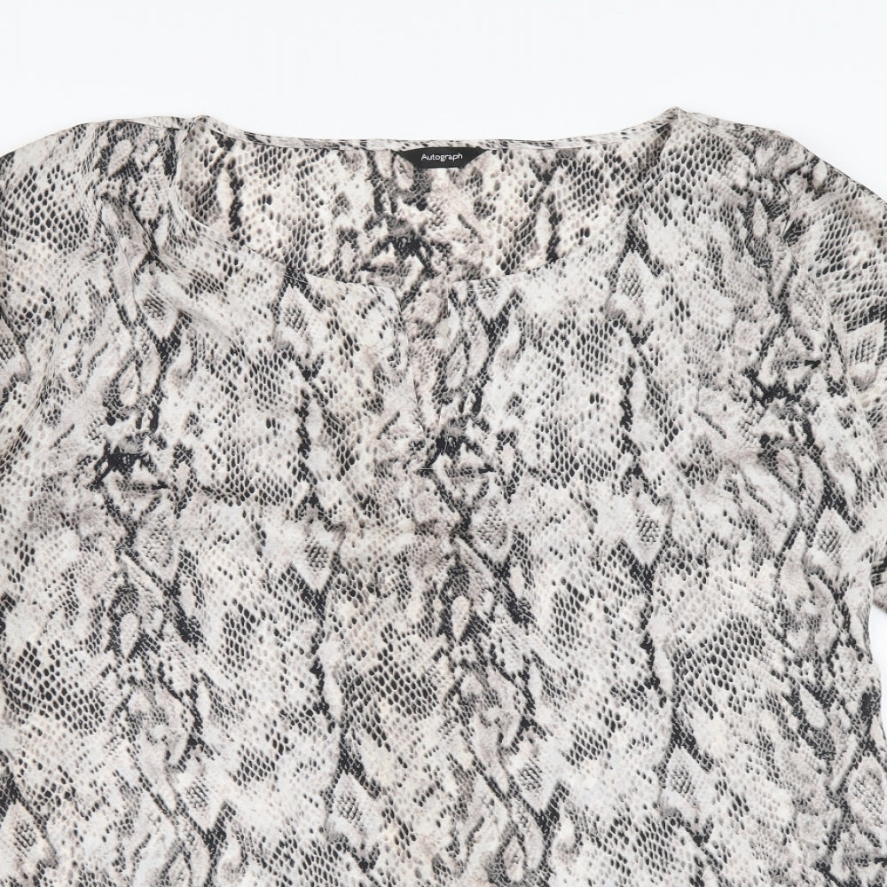 Autograph Womens Beige Animal Print Polyester Tunic Blouse Size 12 V-Neck - Snake pattern