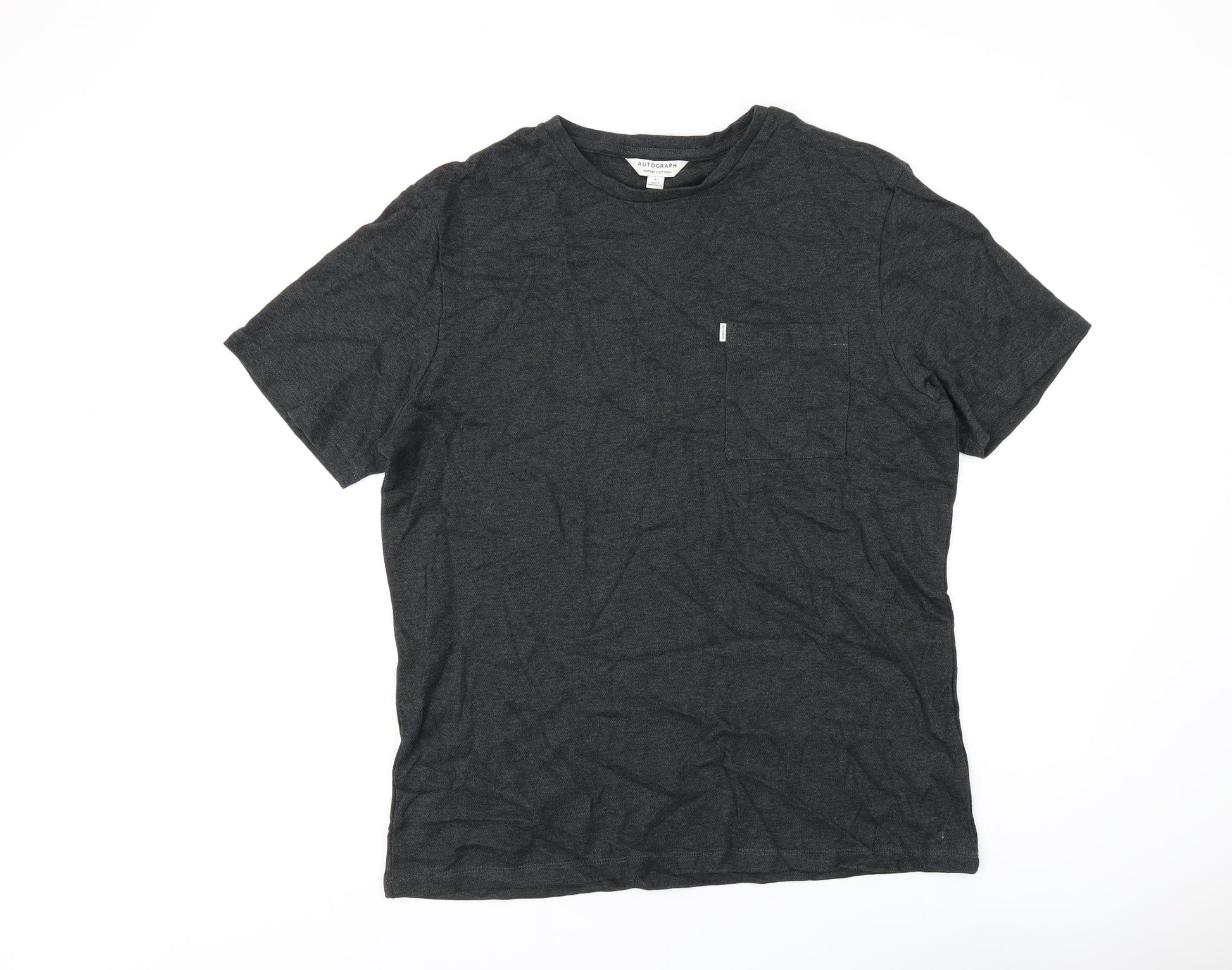 Autograph Womens Black Cotton Basic T-Shirt Size L Round Neck