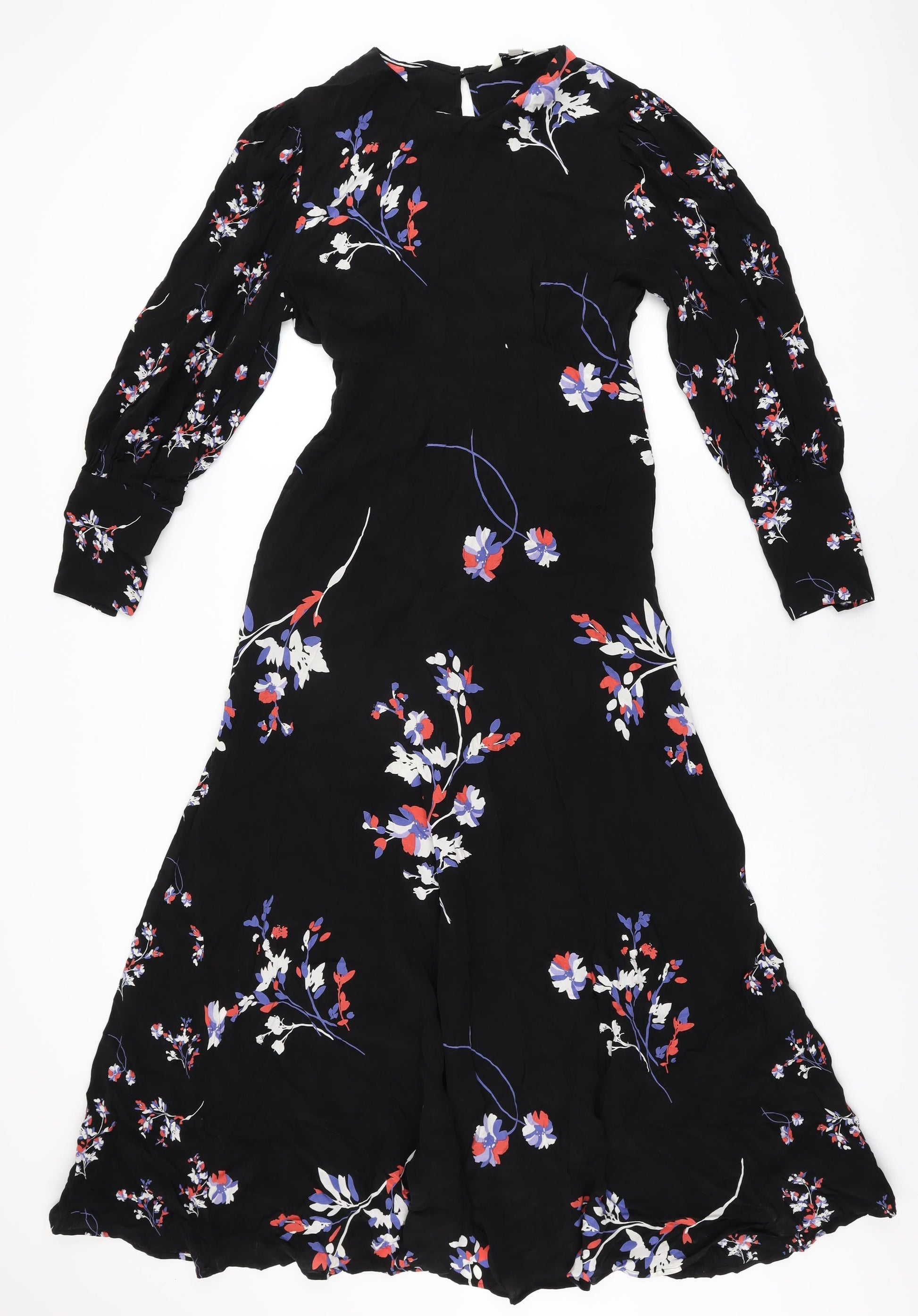 Autograph Womens Black Floral Cupro A-Line Size 10 Round Neck Zip