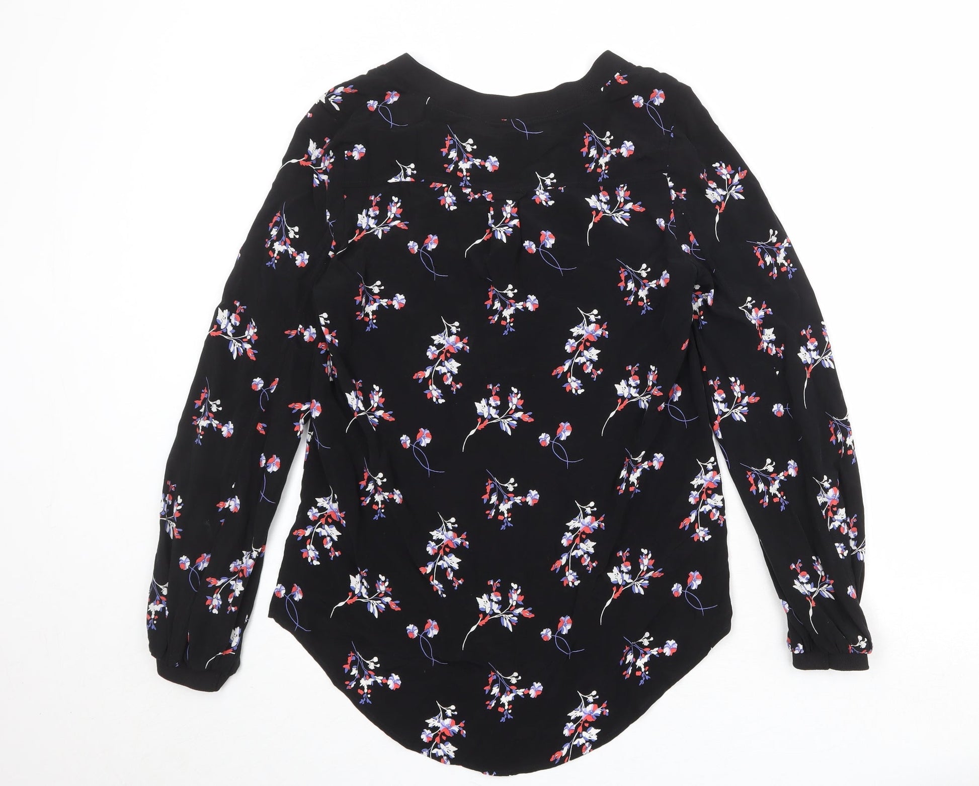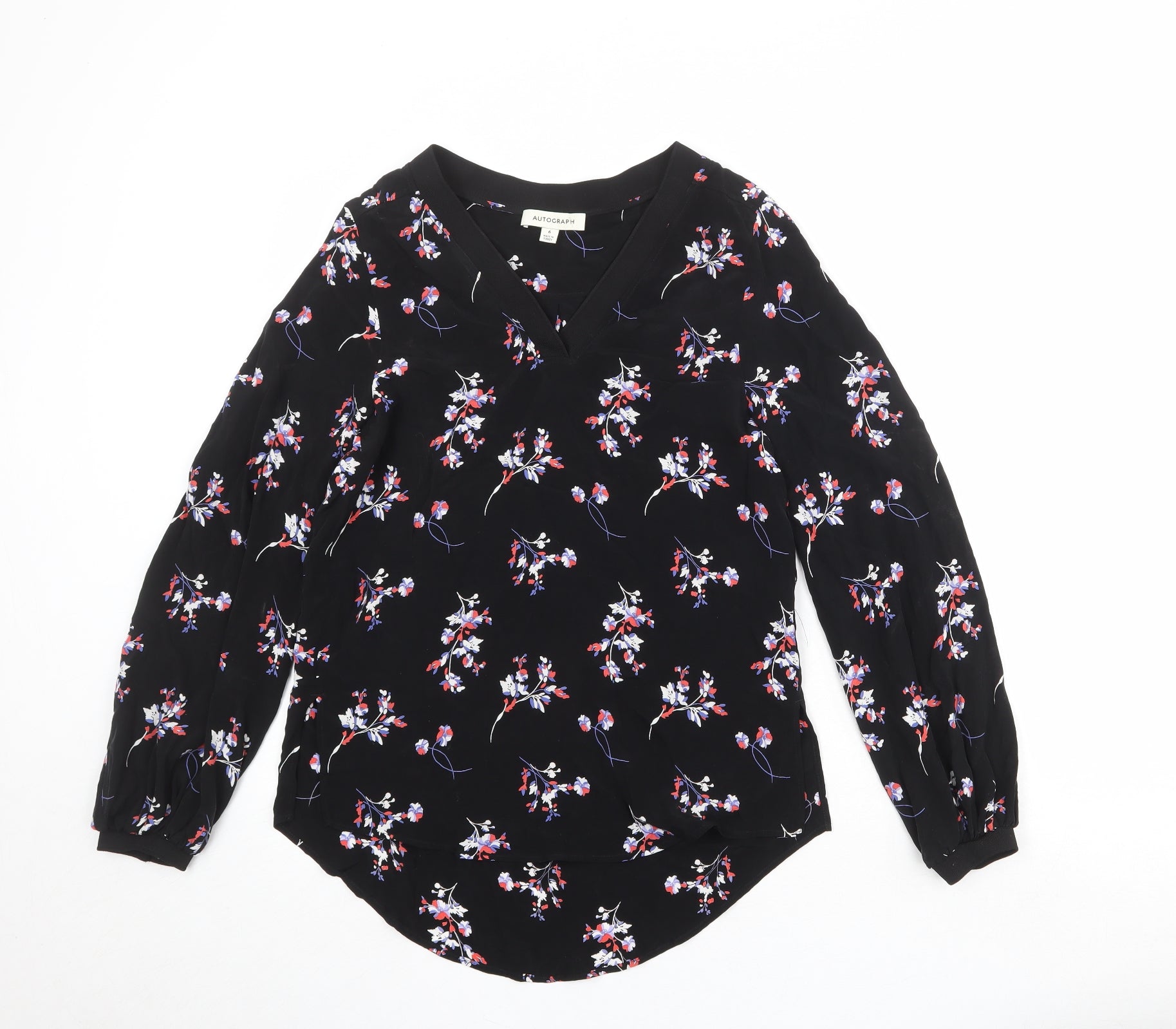 Autograph Womens Black Floral Cupro Basic Blouse Size 6 V-Neck