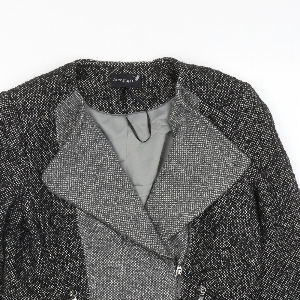 Autograph Womens Black Geometric Biker Jacket Size 12 Zip