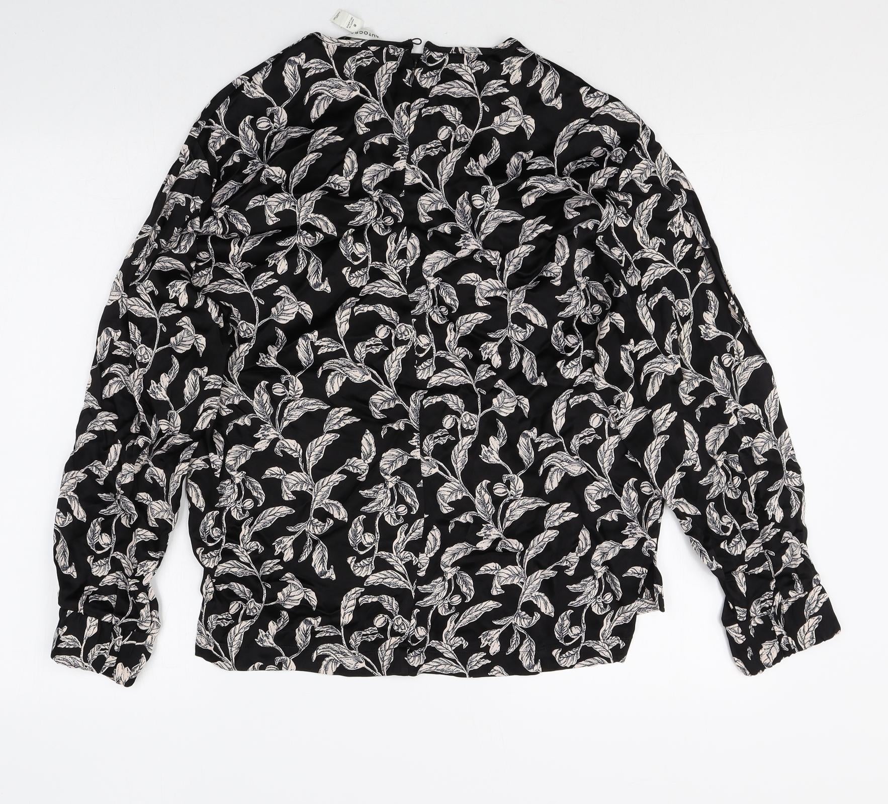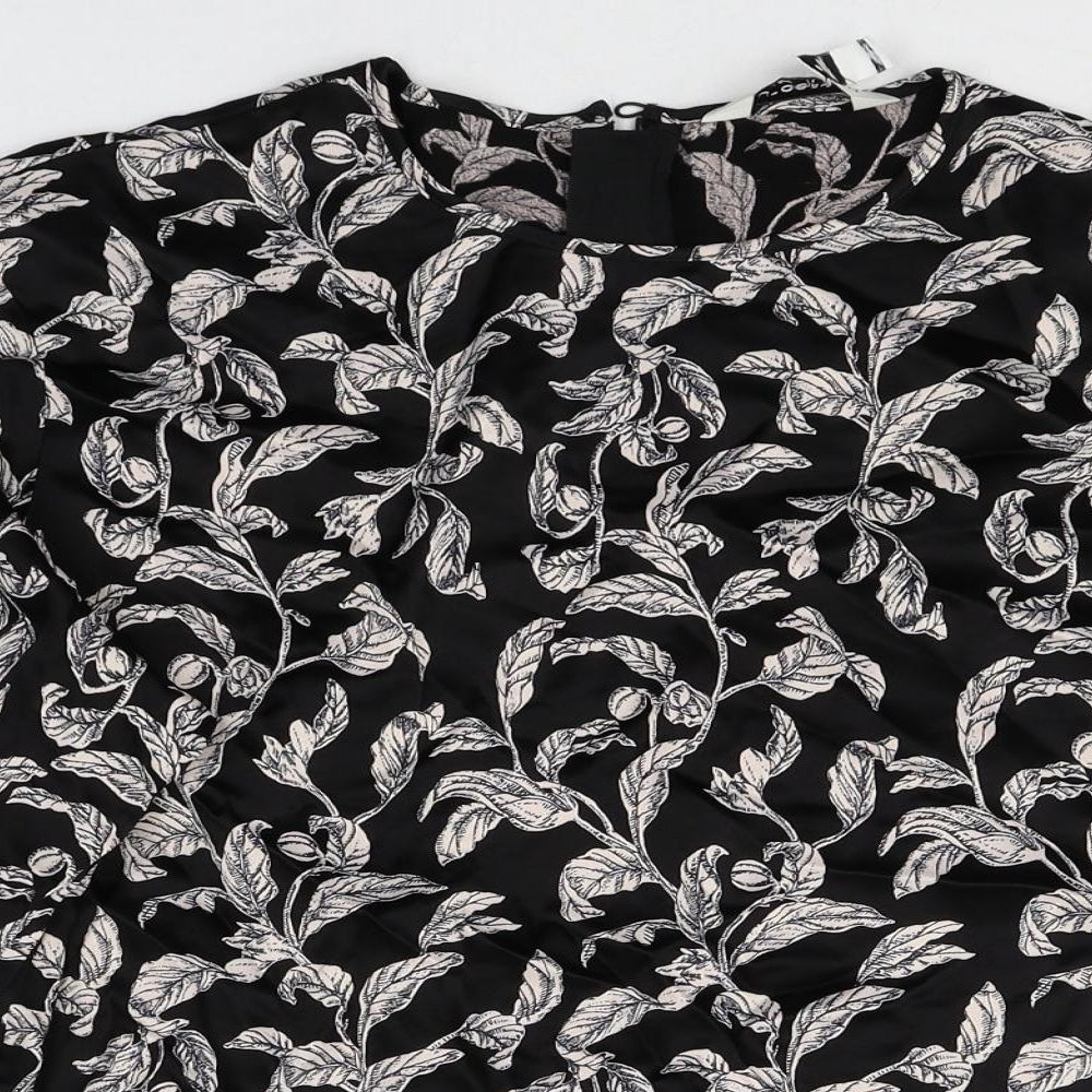 Autograph Womens Black Geometric Viscose Basic Blouse Size 8 Round Neck