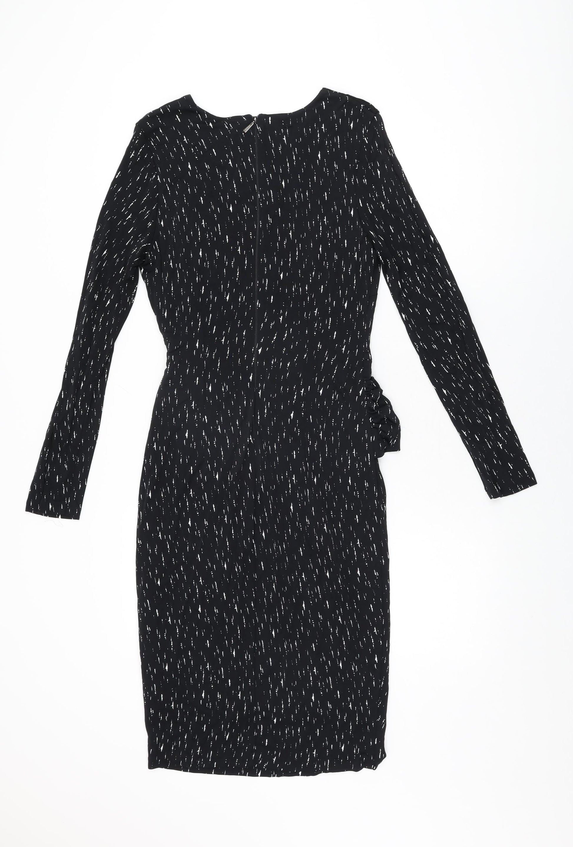 Autograph Womens Black Geometric Viscose Bodycon Size 12 Round Neck Zip
