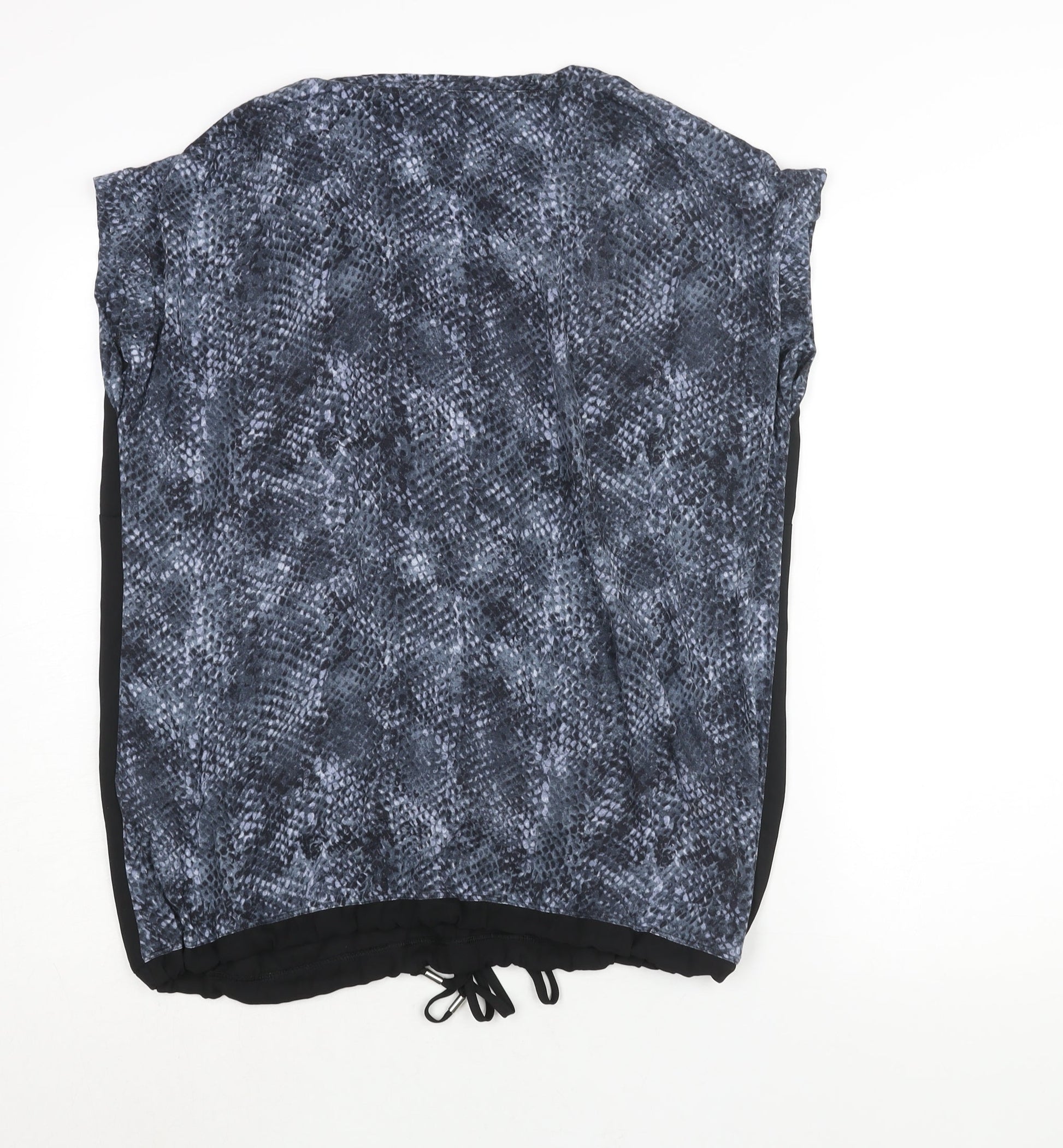 Autograph Womens Black Polyester Basic Blouse Size 18 Round Neck - Drawstring Hem Snakeskin Print Back