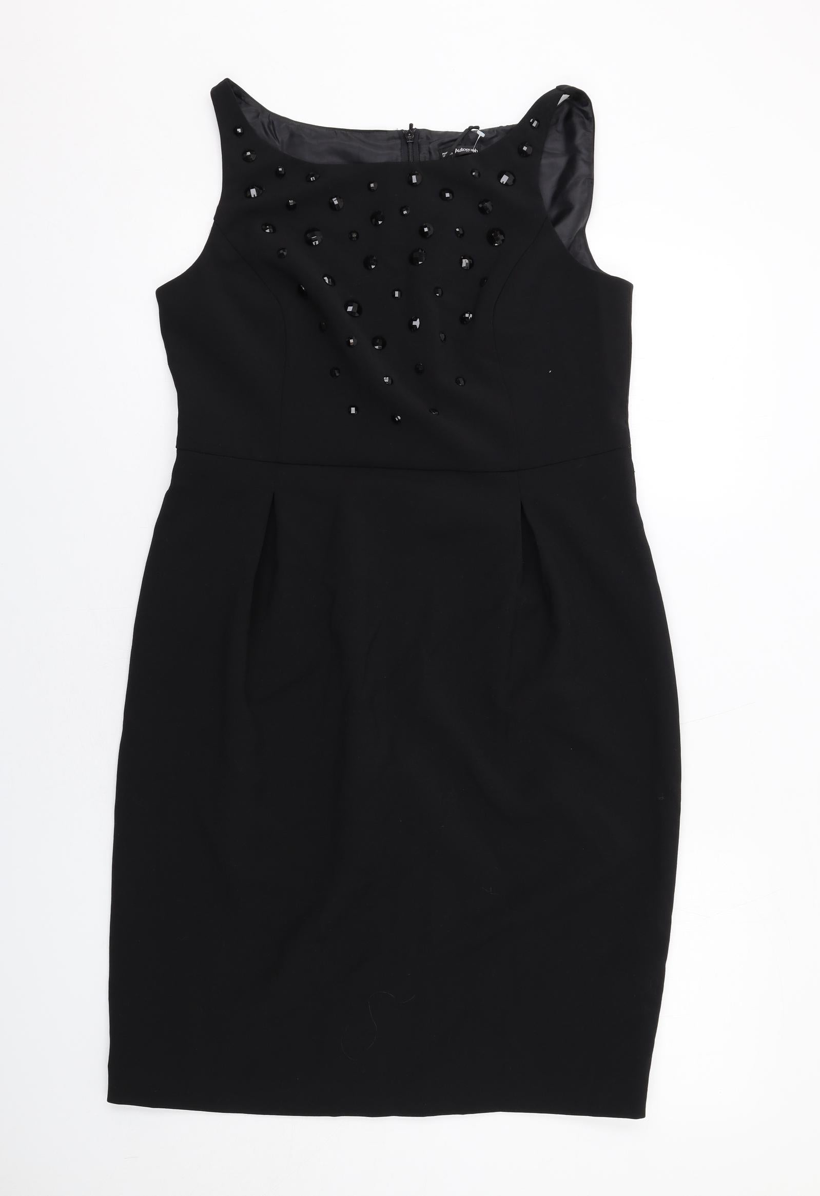 Autograph Womens Black Polyester Shift Size 14 Boat Neck Zip