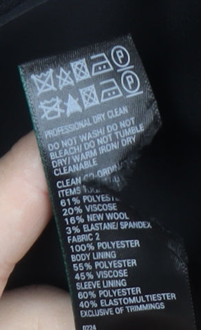 - Material Breakdown: 61% Polyester 20% Viscose 16% Wool 3% Elastane