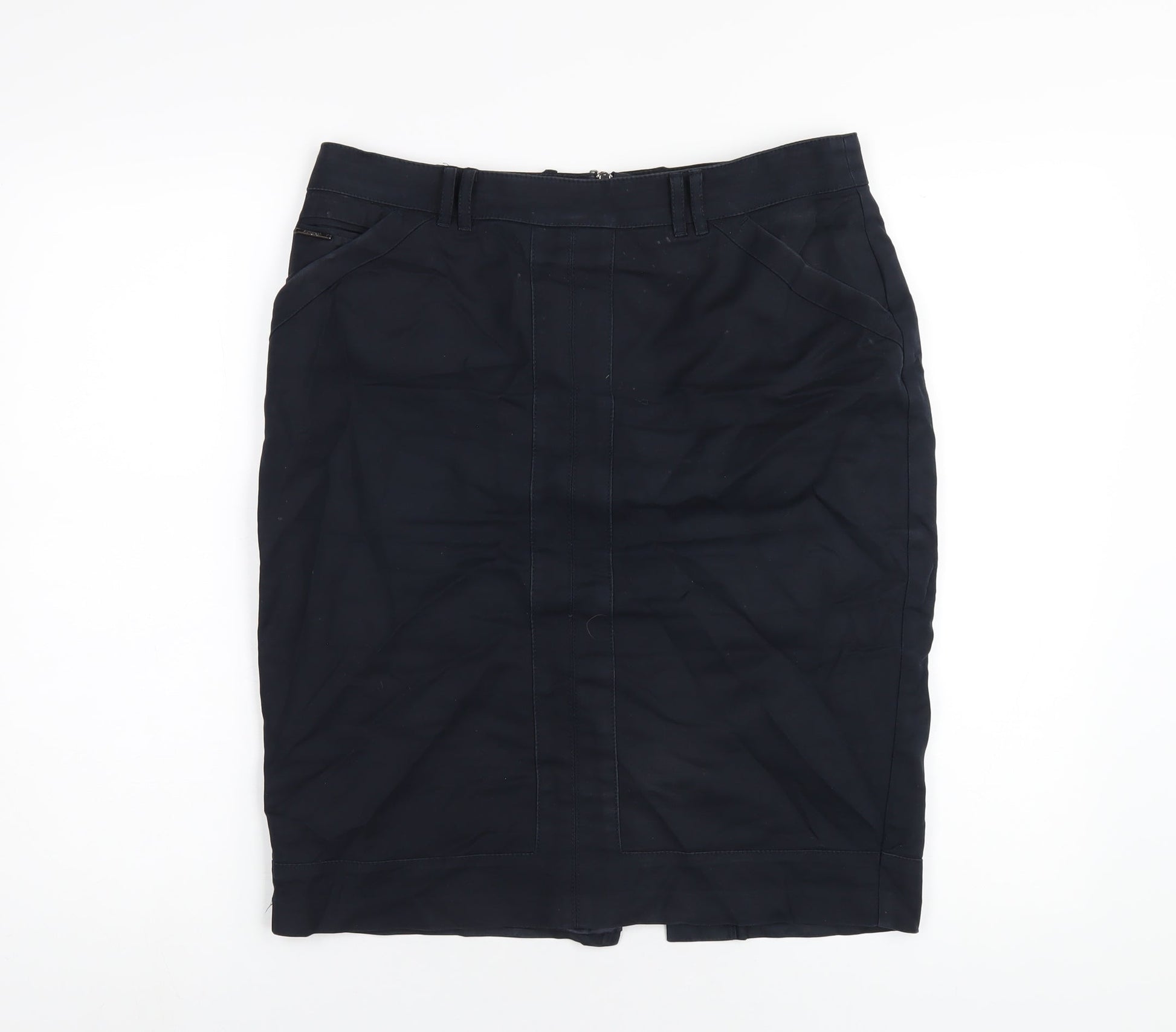 Autograph Womens Blue Cotton Straight & Pencil Skirt Size 12 Zip