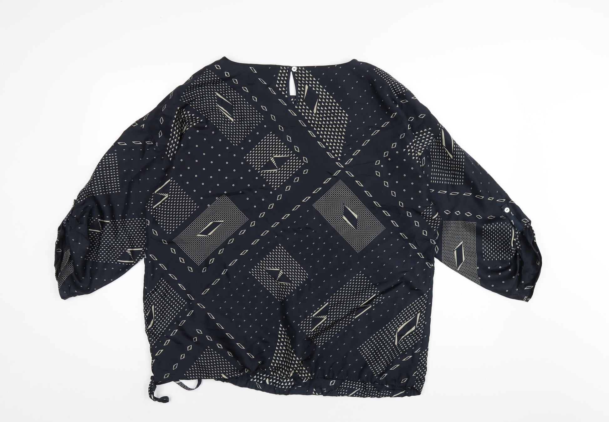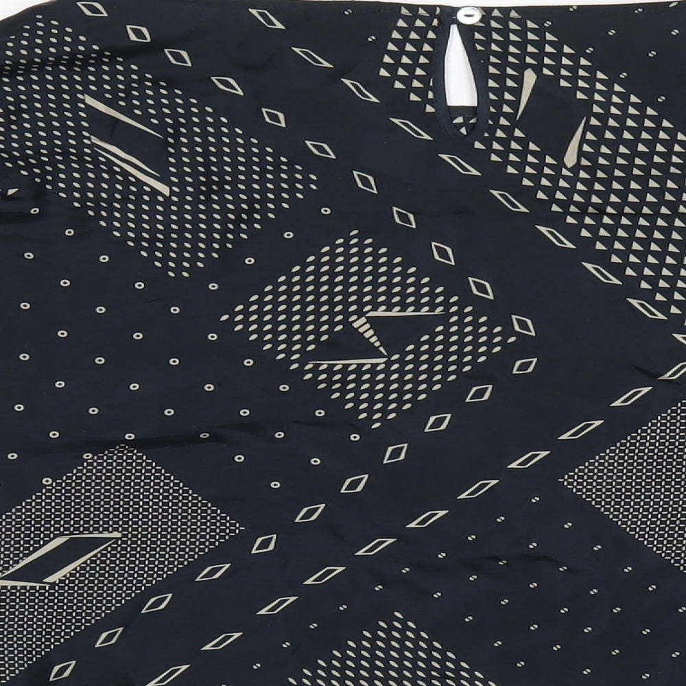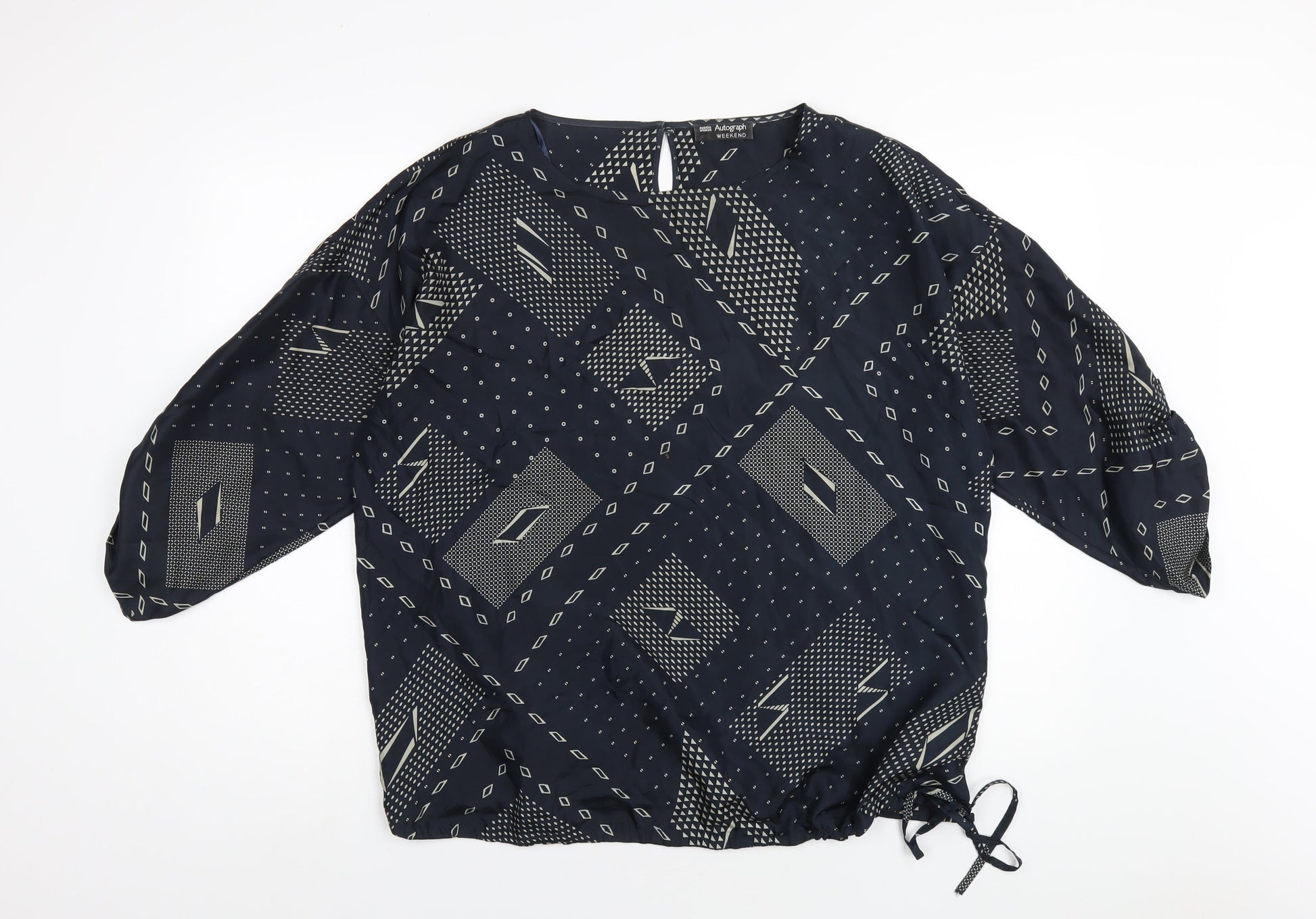Autograph Womens Blue Geometric Silk Basic Blouse Size 16 Round Neck