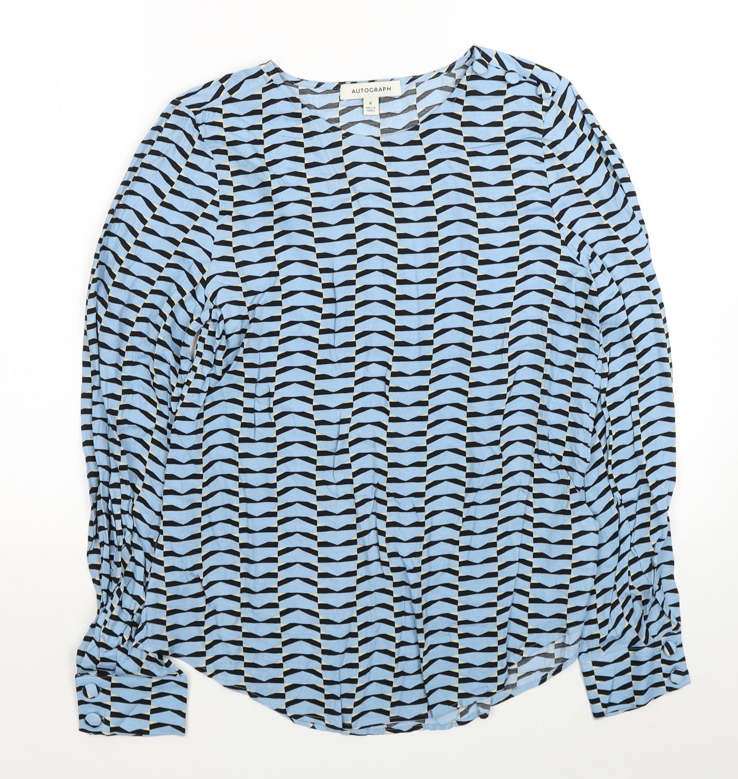 Autograph Womens Blue Geometric Viscose Basic Blouse Size 6 Scoop Neck