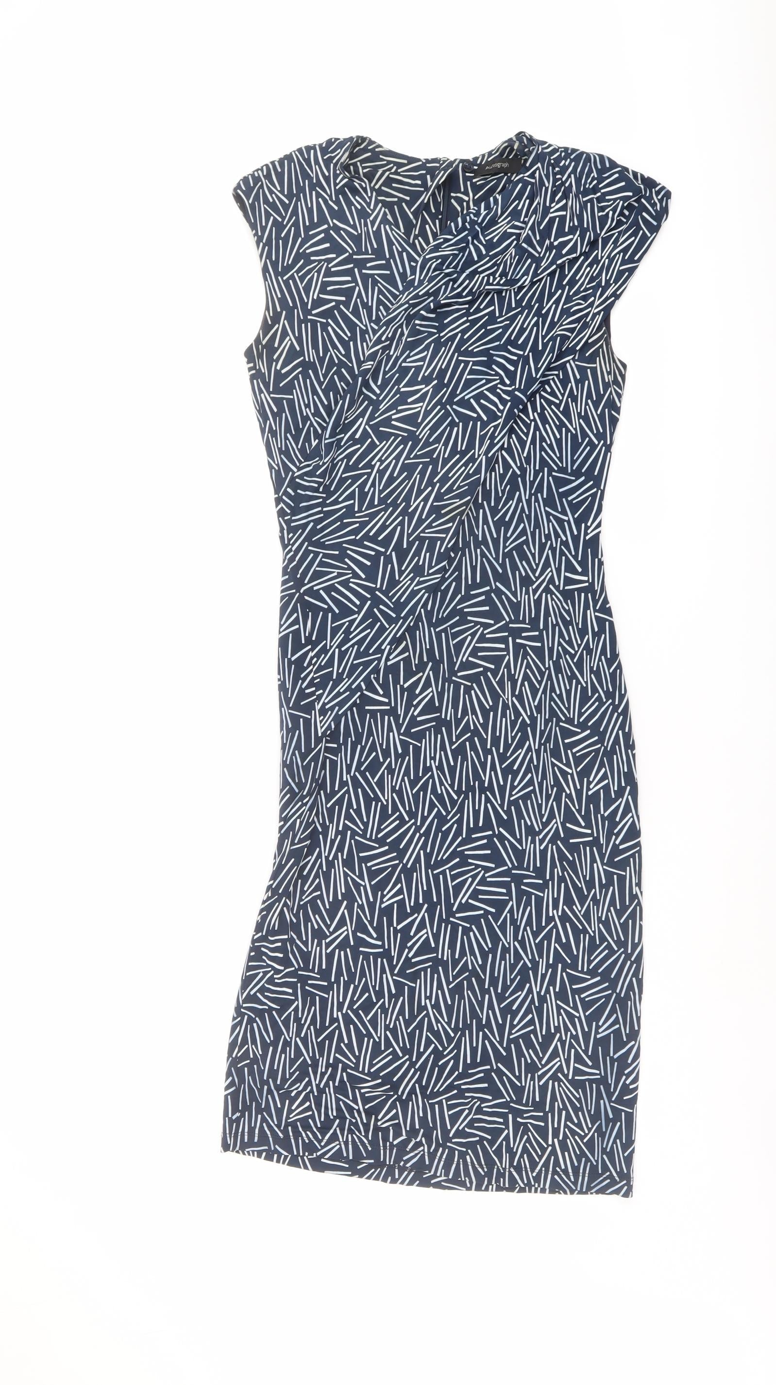 Autograph Womens Blue Geometric Viscose Shift Size 8 V-Neck Zip