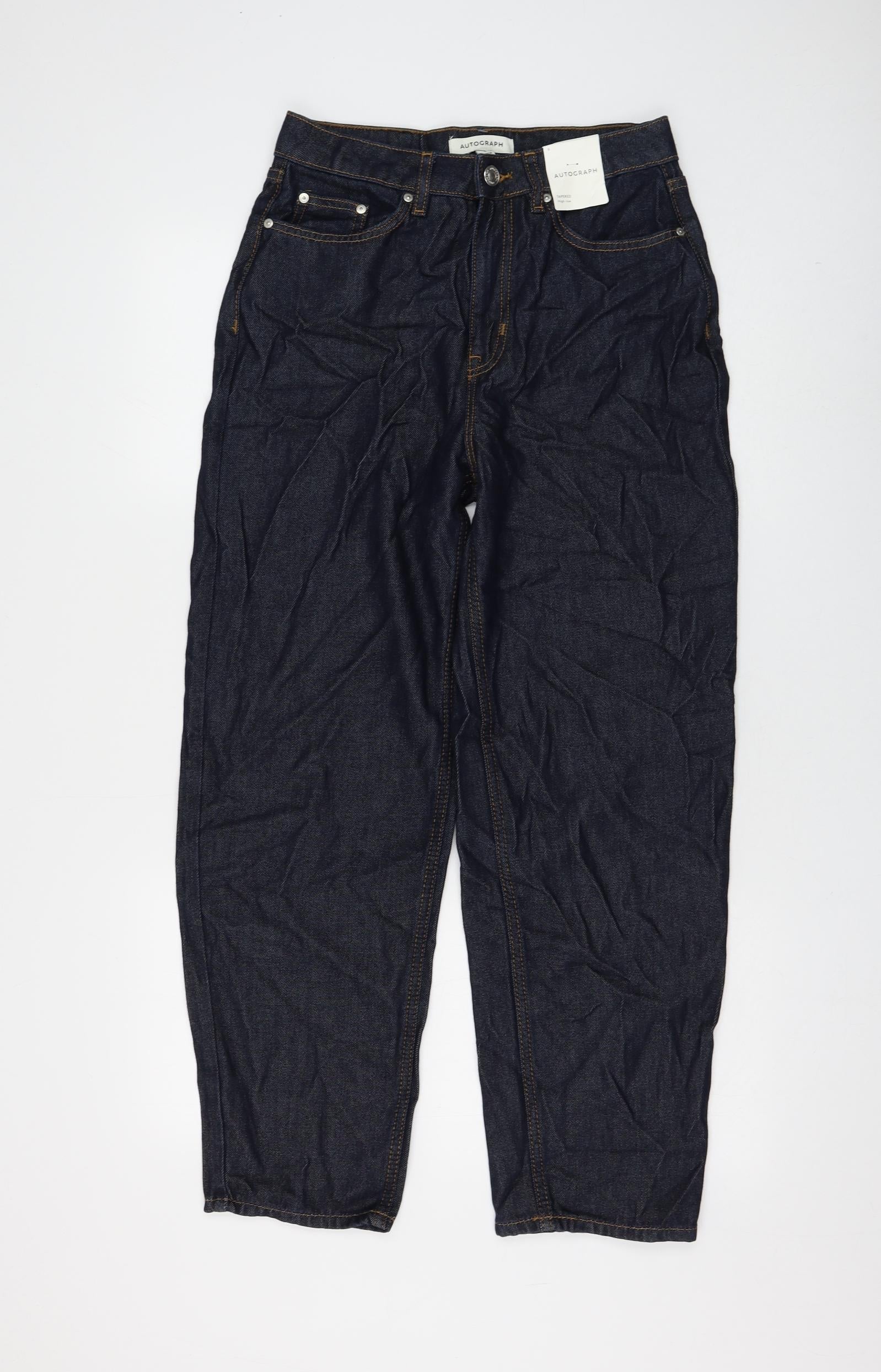 Autograph Womens Blue Polyester Tapered Jeans Size 8 L27 in Regular Zip
