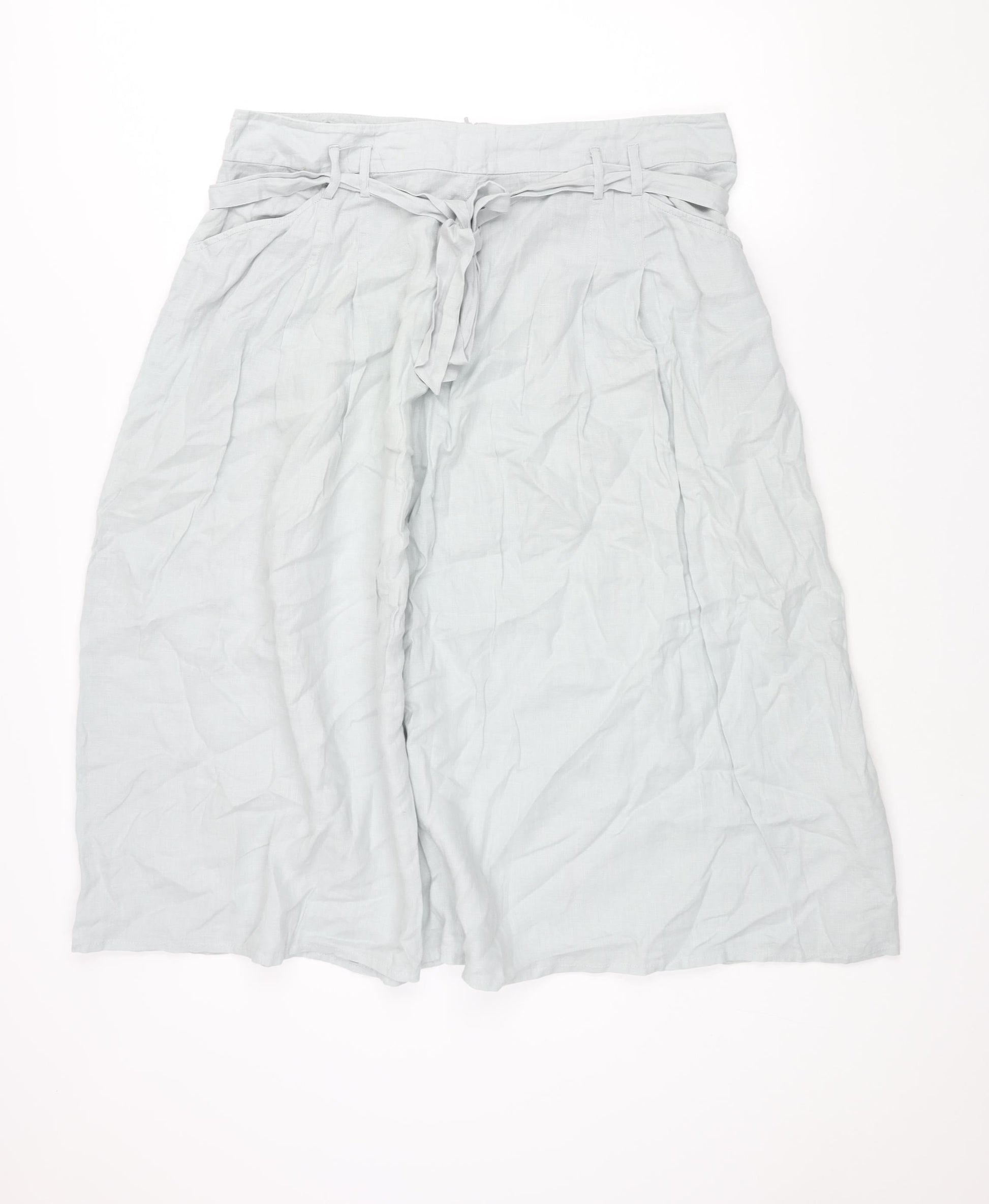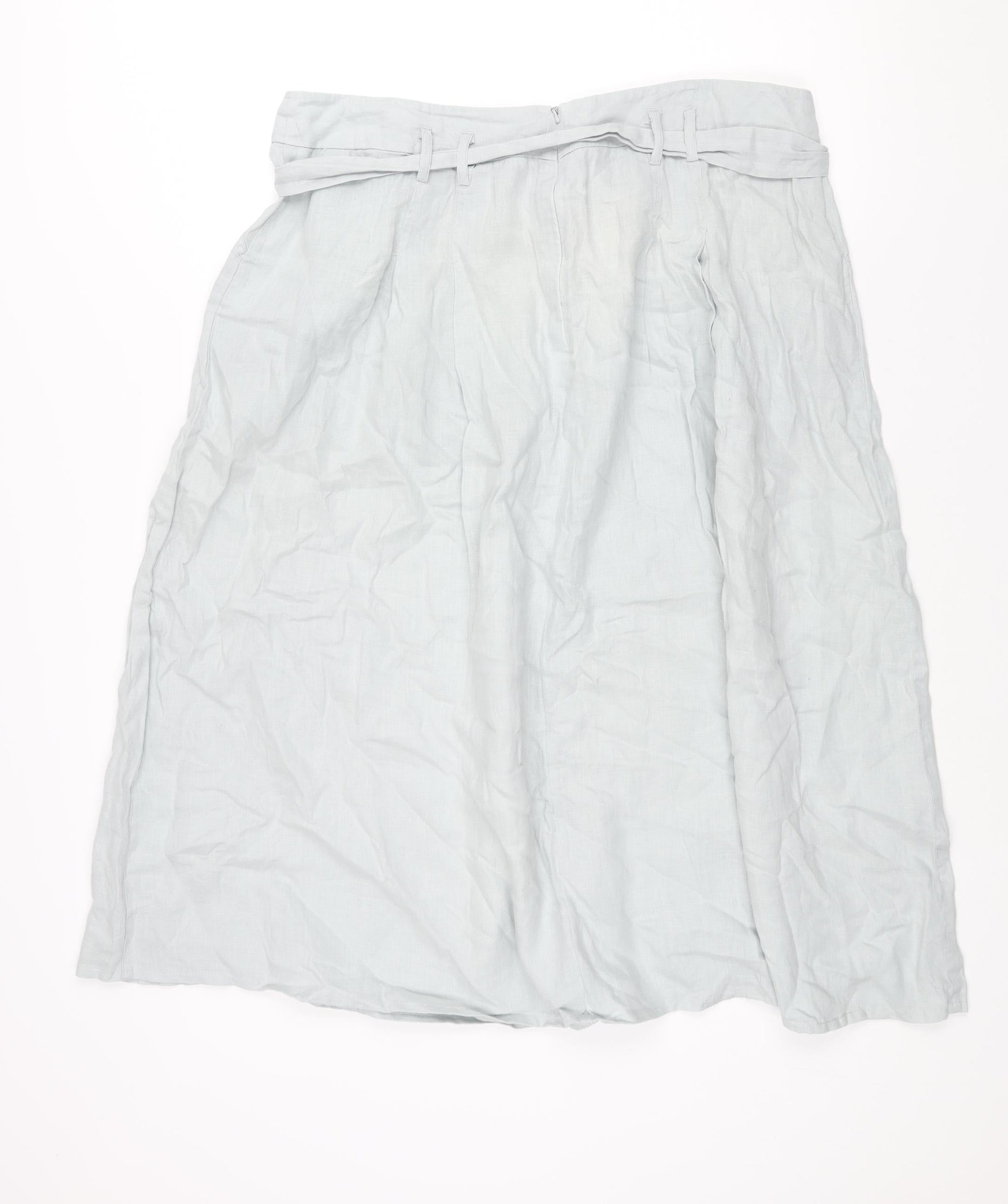 Autograph Womens Green Linen A-Line Skirt Size 18 Zip - Belted