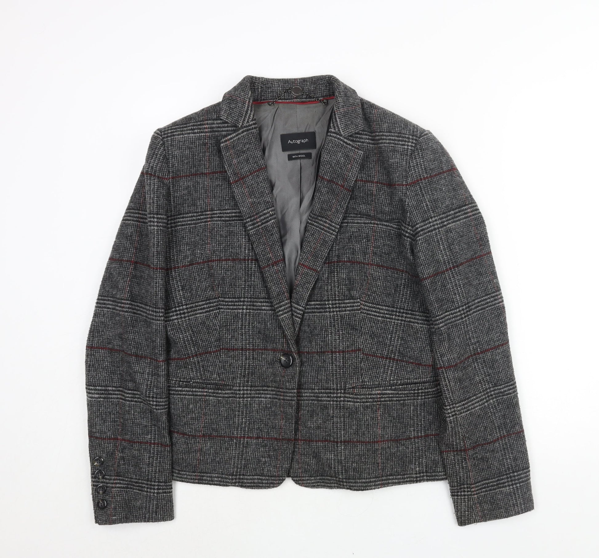 Autograph Womens Grey Check Jacket Blazer Size 14 Button