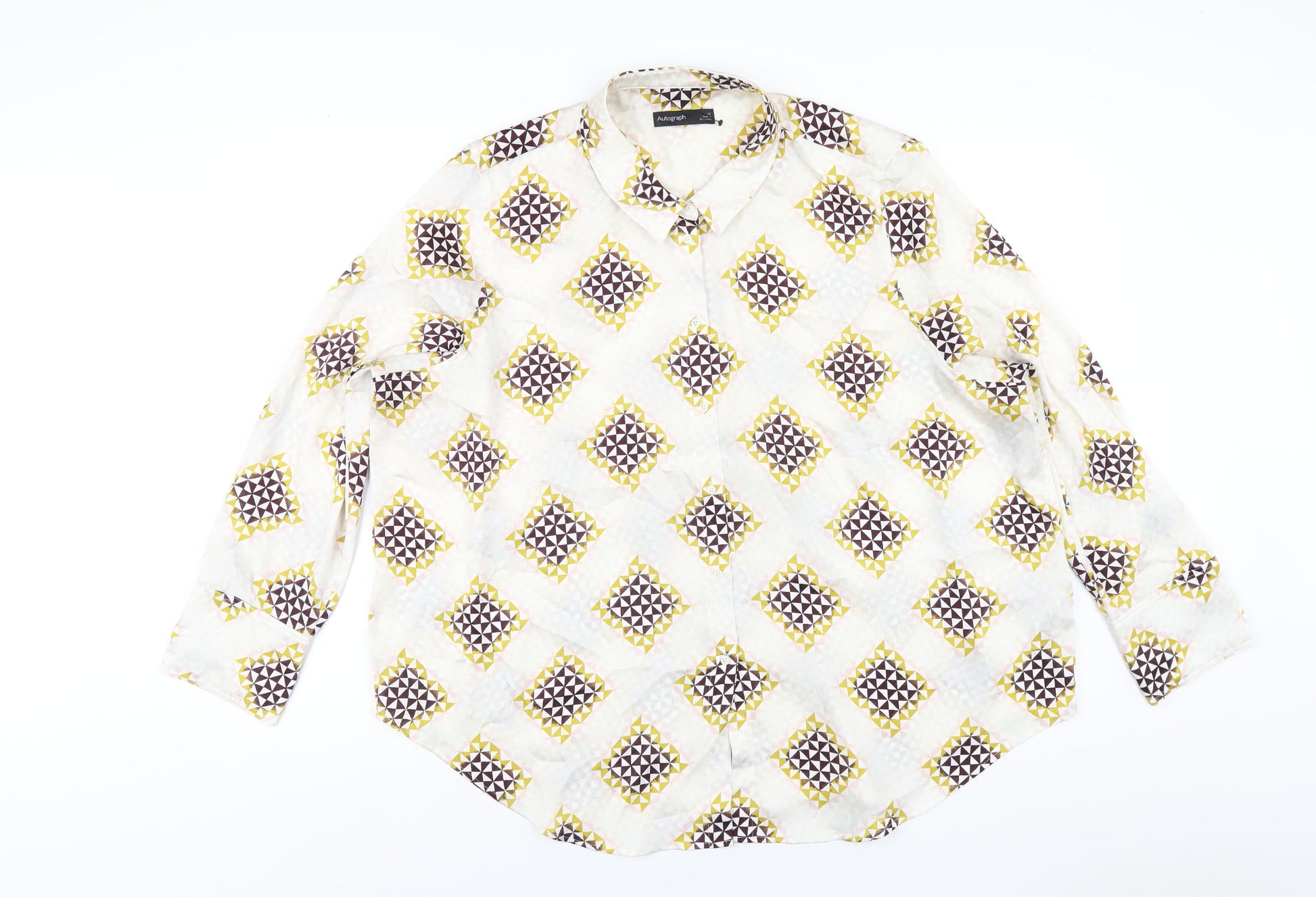 Autograph Womens Multicoloured Geometric Polyester Basic Button-Up Size 22 Collared