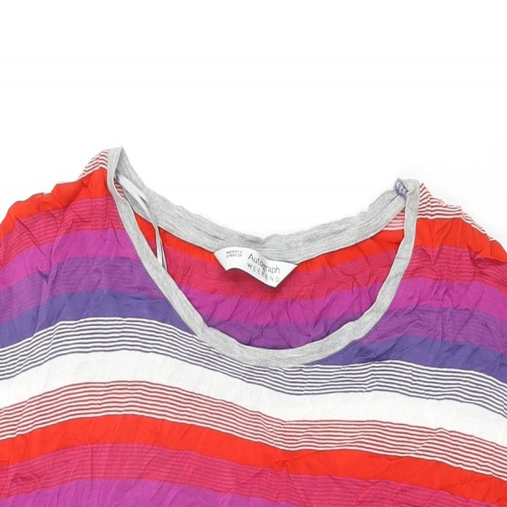 Autograph Womens Multicoloured Striped Viscose Basic T-Shirt Size 12 Round Neck