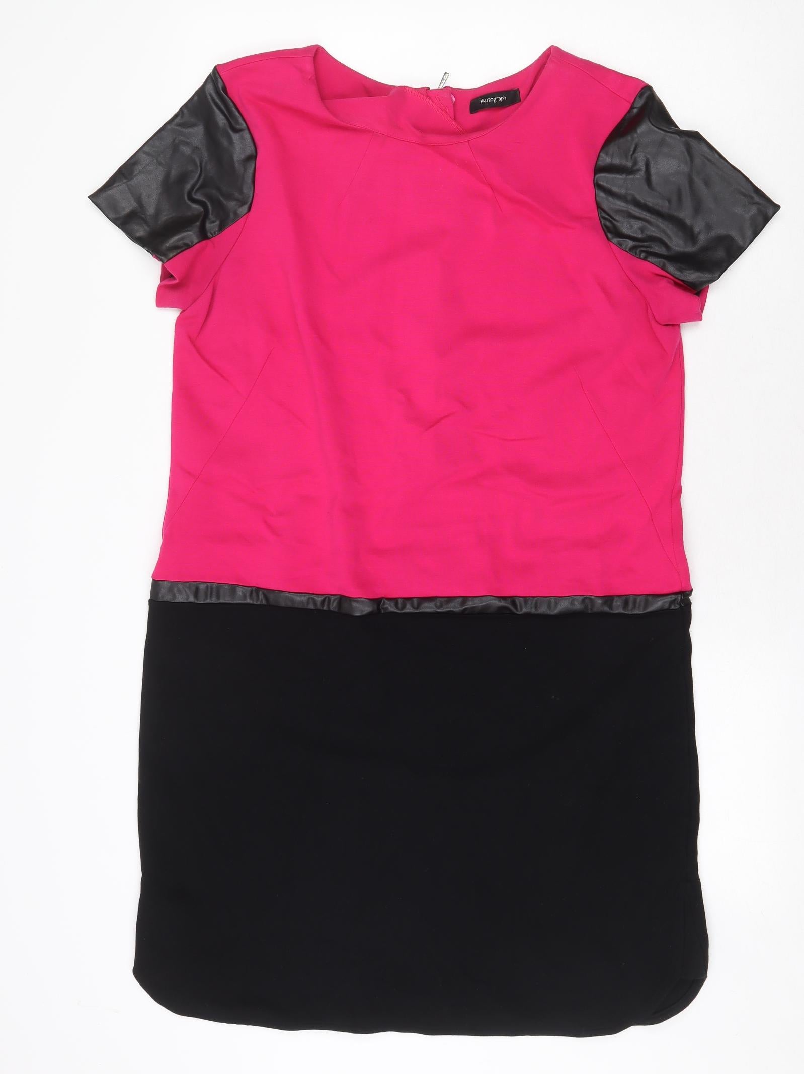 Autograph Womens Pink Colourblock Viscose A-Line Size 14 Round Neck Zip