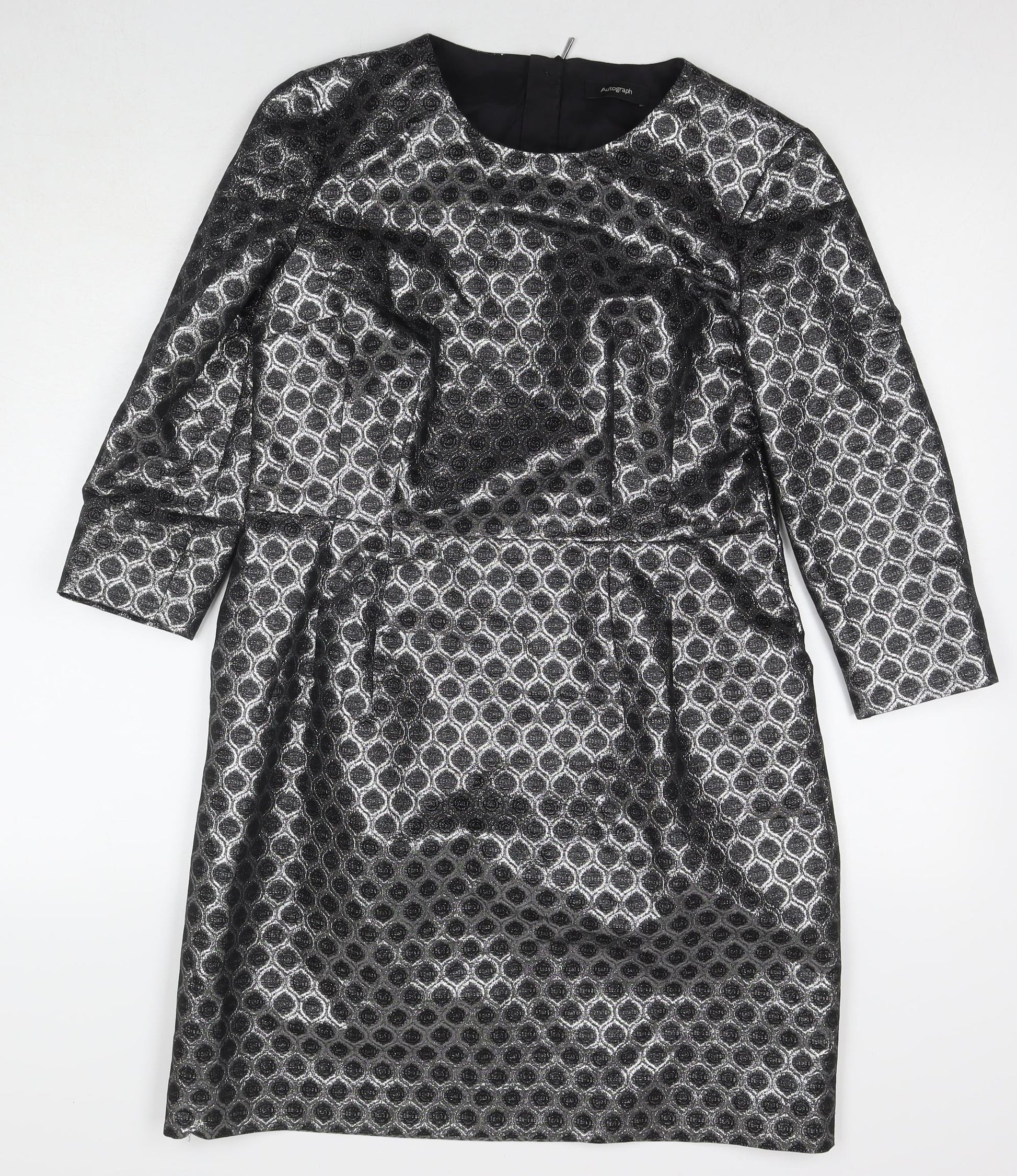 Autograph Womens Silver Polyester A-Line Size 12 Round Neck Pullover