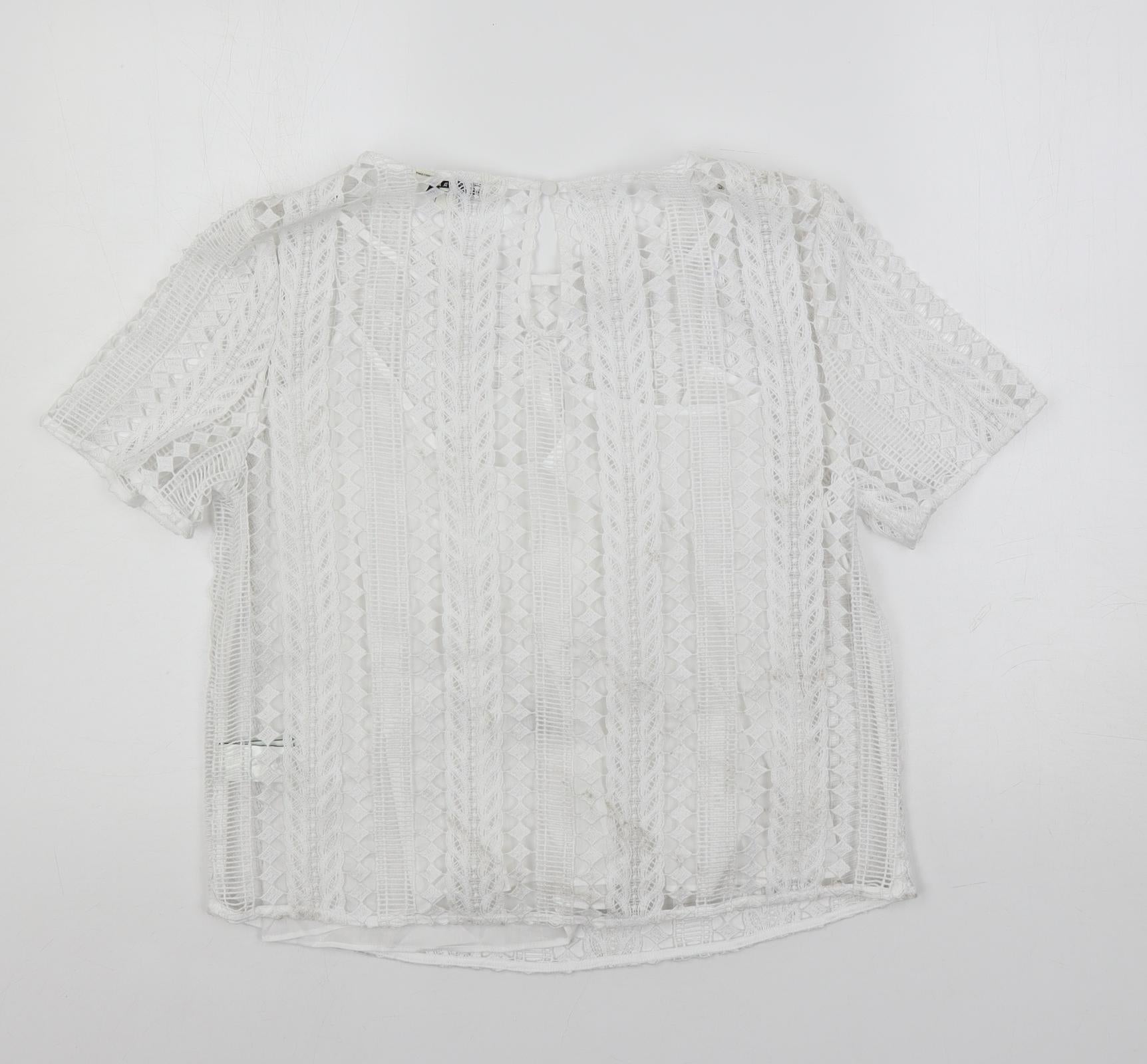 Autograph Womens White Cotton Basic Blouse Size 8 Boat Neck - Lined