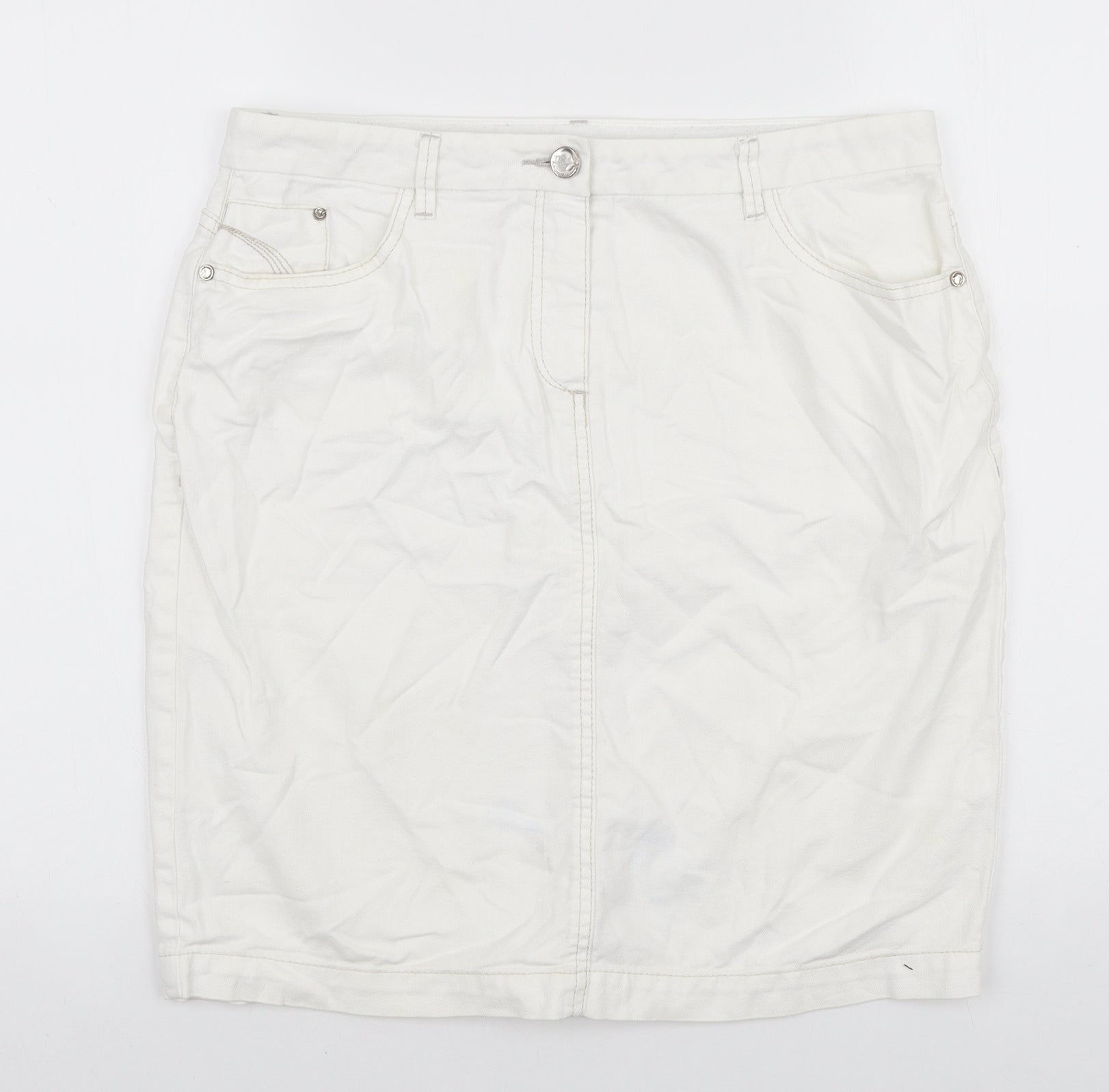 Autograph Womens White Cotton Straight & Pencil Skirt Size 12 Zip