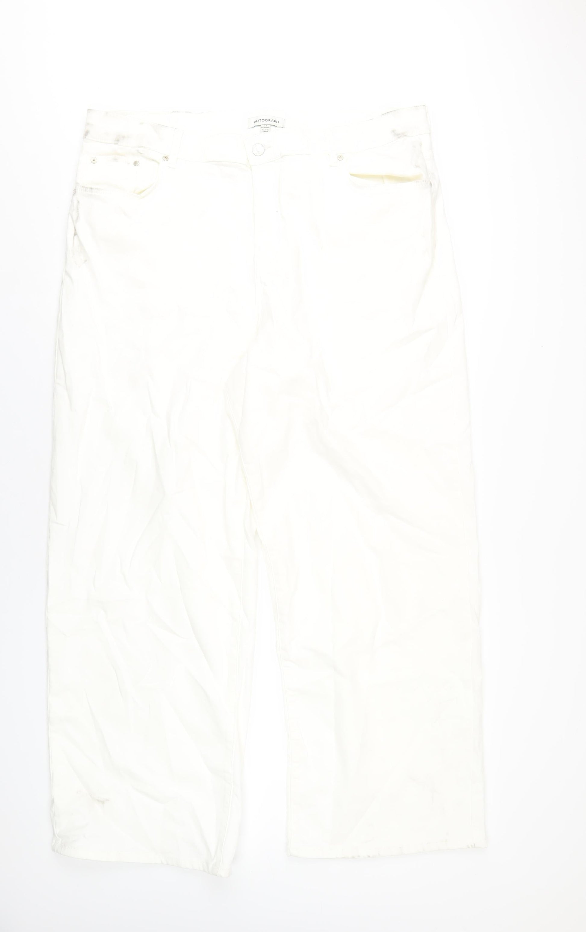 Autograph Womens White Cotton Wide-Leg Jeans Size 22 L30 in Regular Zip