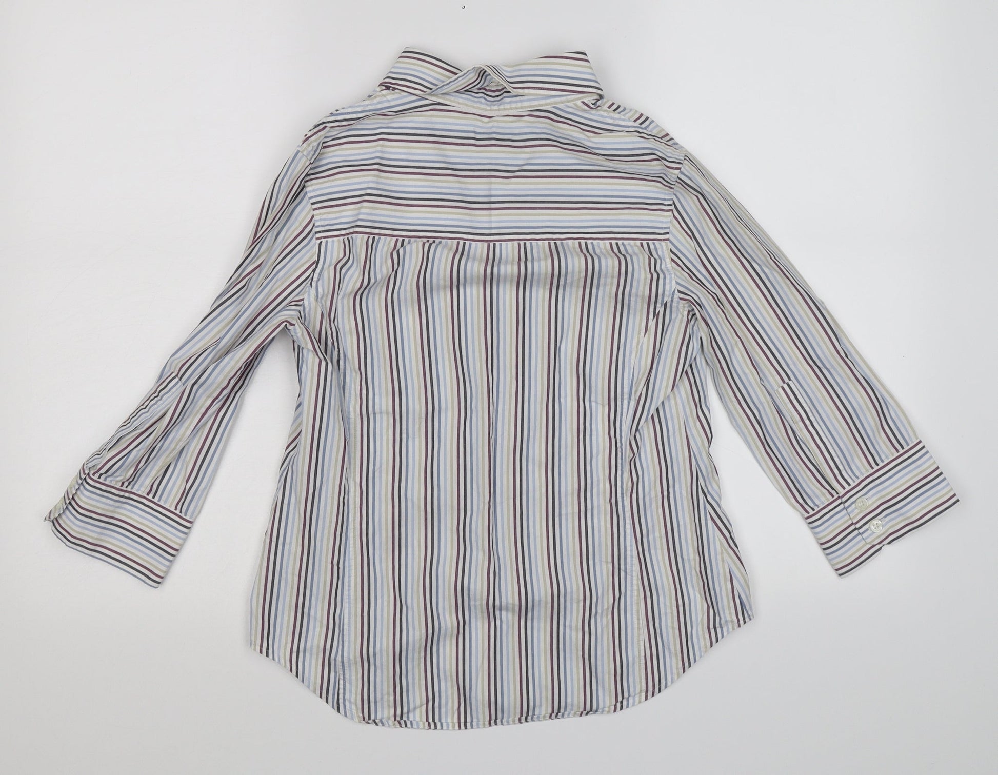 Autograph Womens White Striped Basic Blouse Size 8 - BLUE BROWN