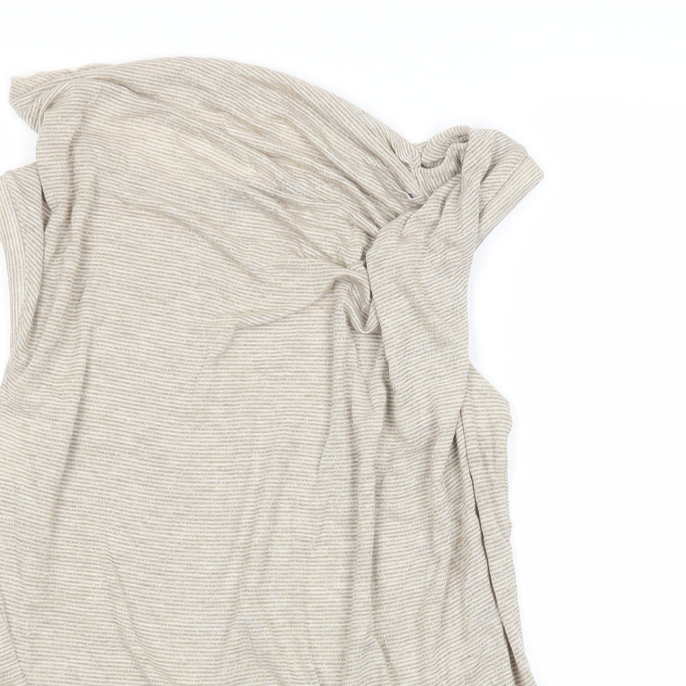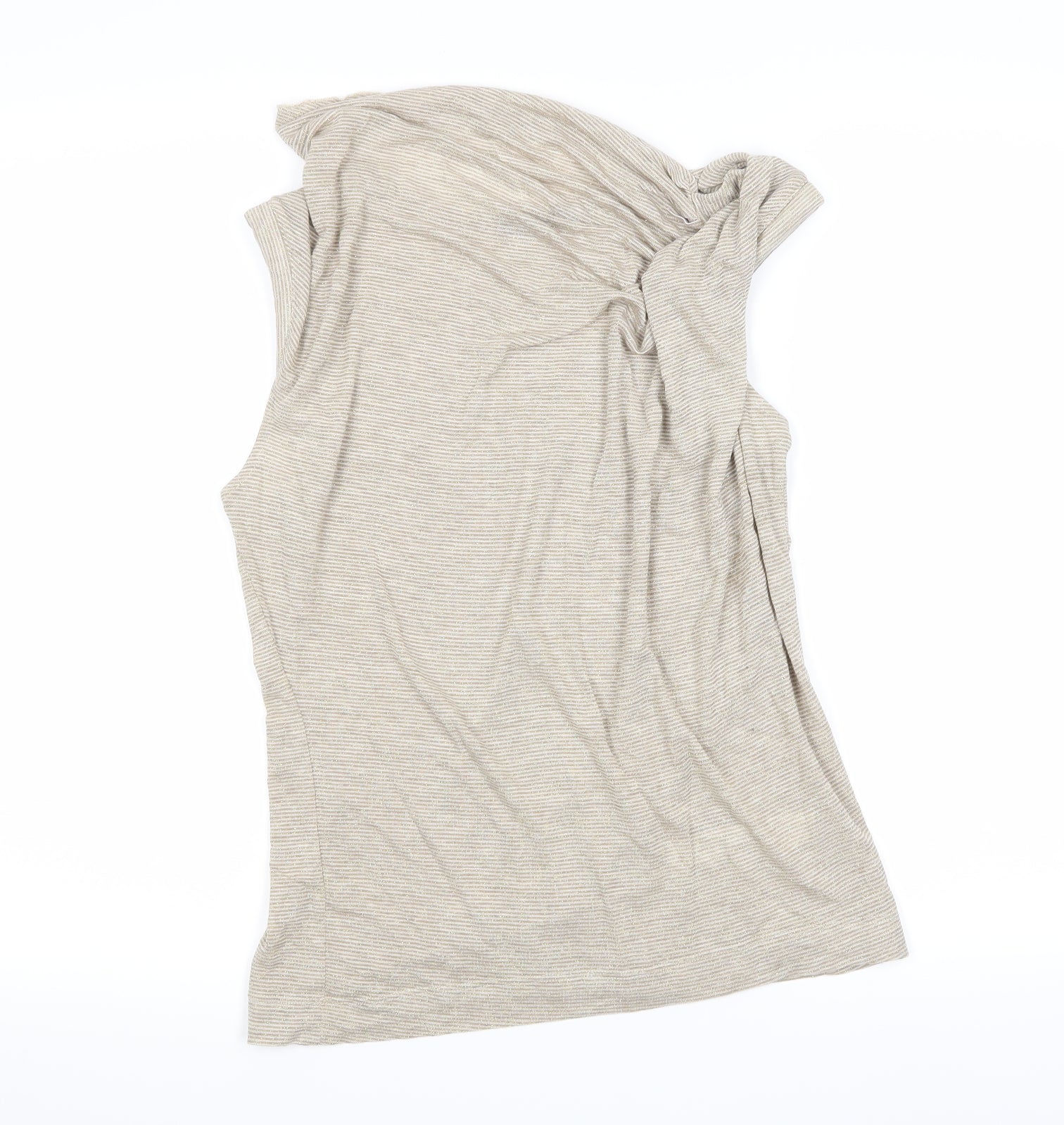 Autograph Womens White Striped Basic T-Shirt Size 12