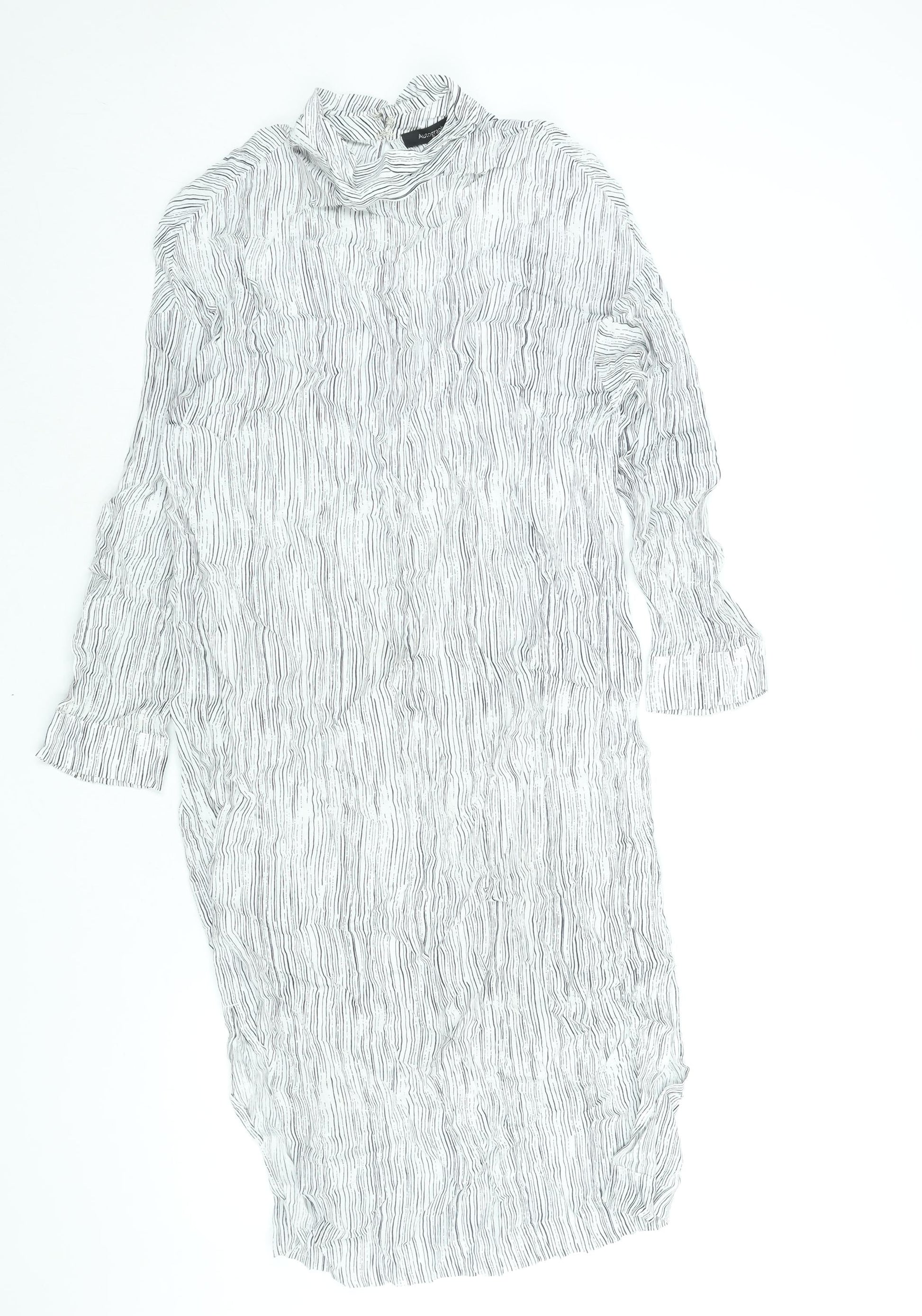 Autograph Womens White Striped Viscose Shift Size 12 Mock Neck Button - Side Slits