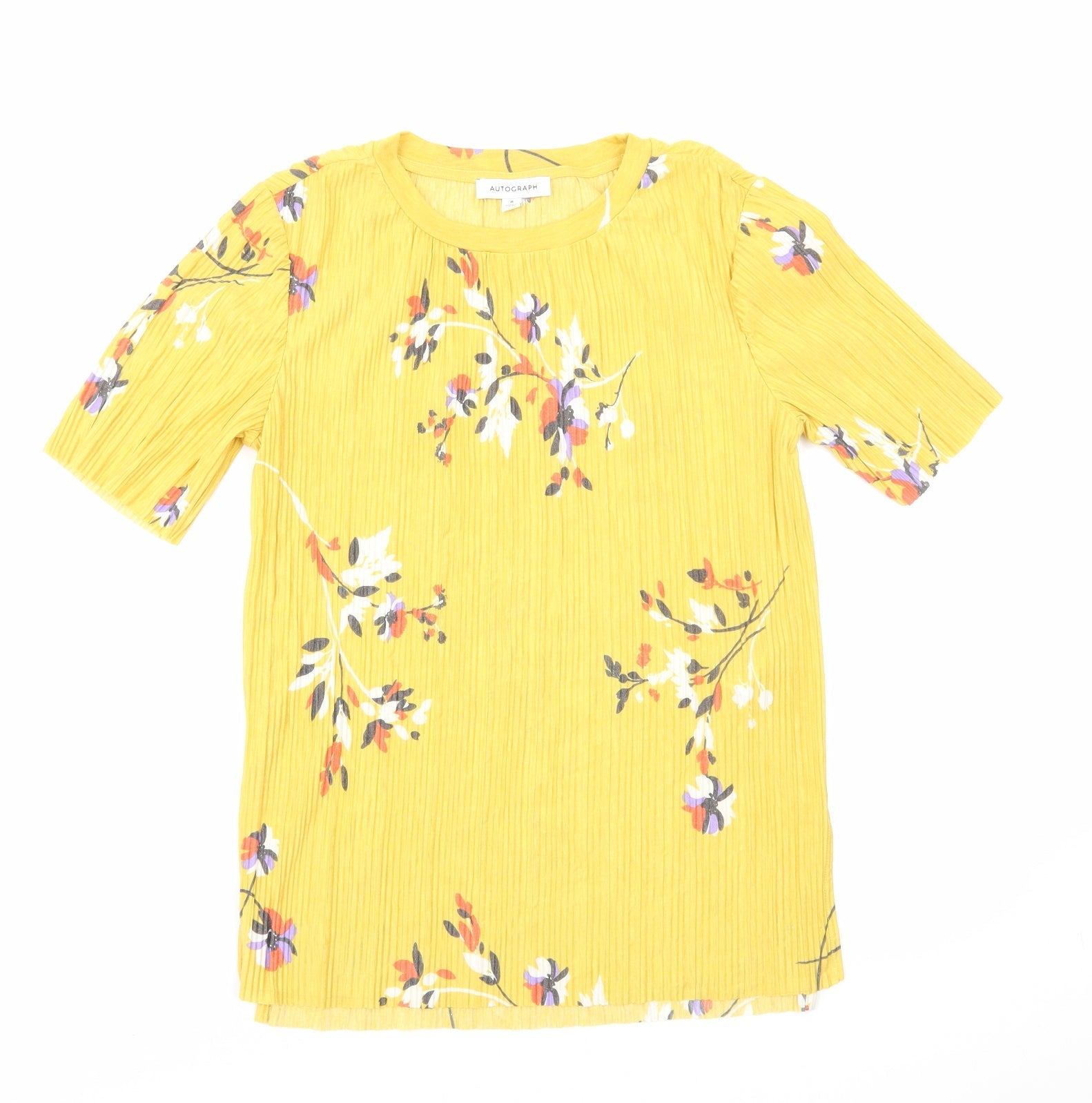 Autograph Womens Yellow Floral Polyester Basic Blouse Size 8 Round Neck