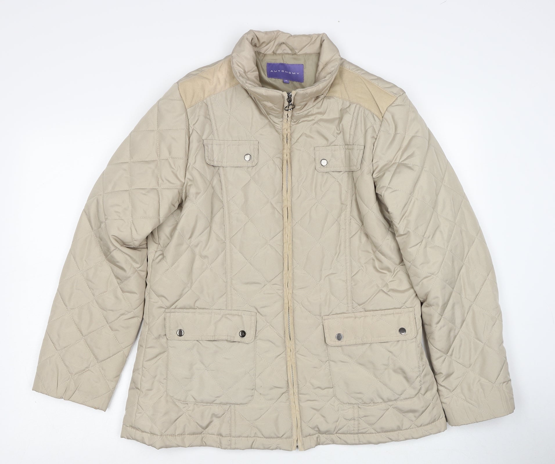 Autonomy Womens Beige Quilted Jacket Size 14 Zip