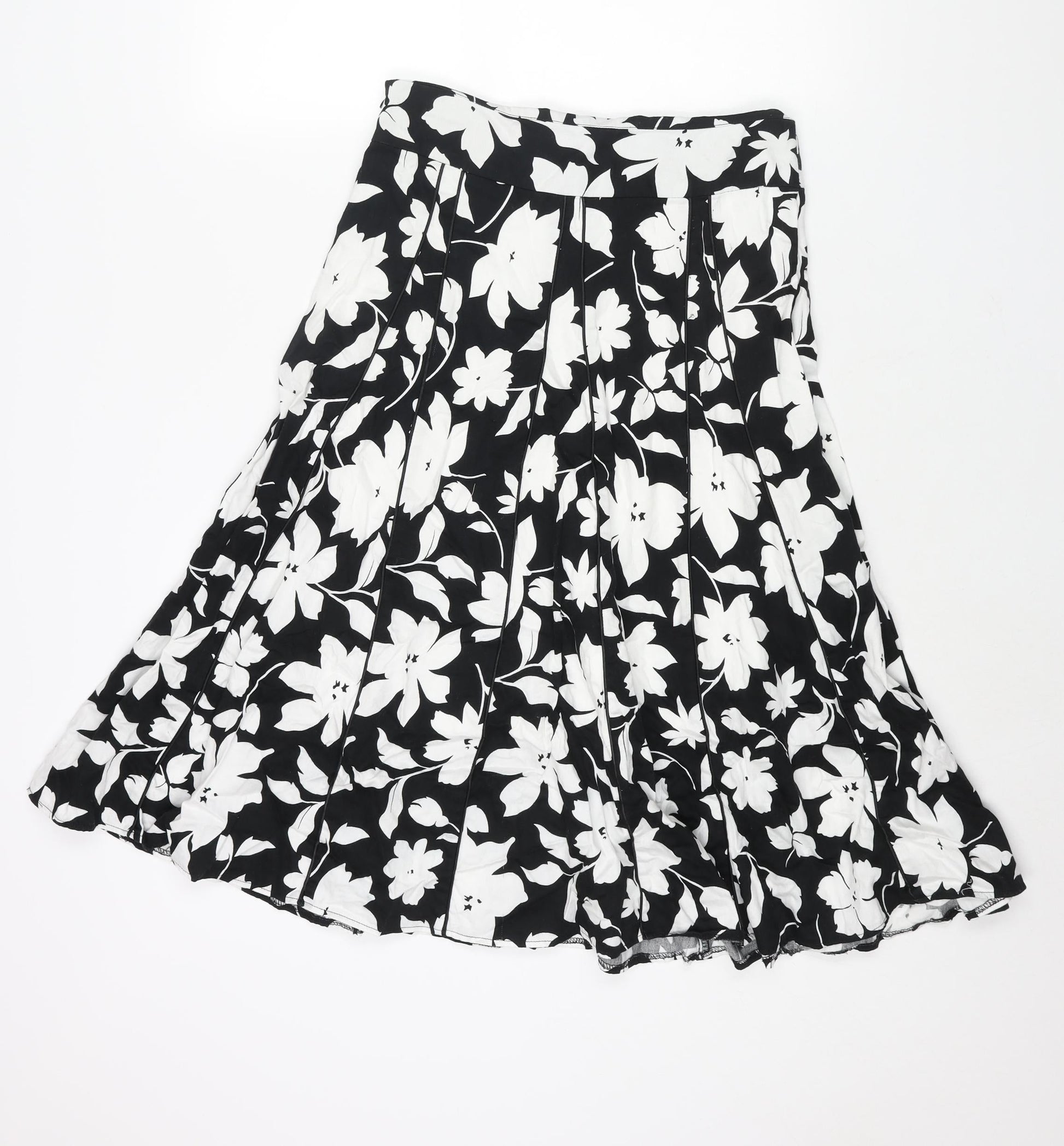 Autonomy Womens Black Floral Cotton Trumpet Skirt Size 10 Zip