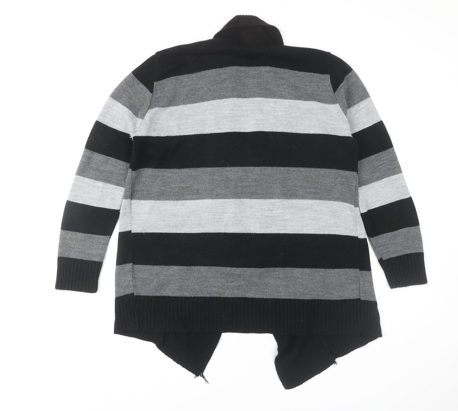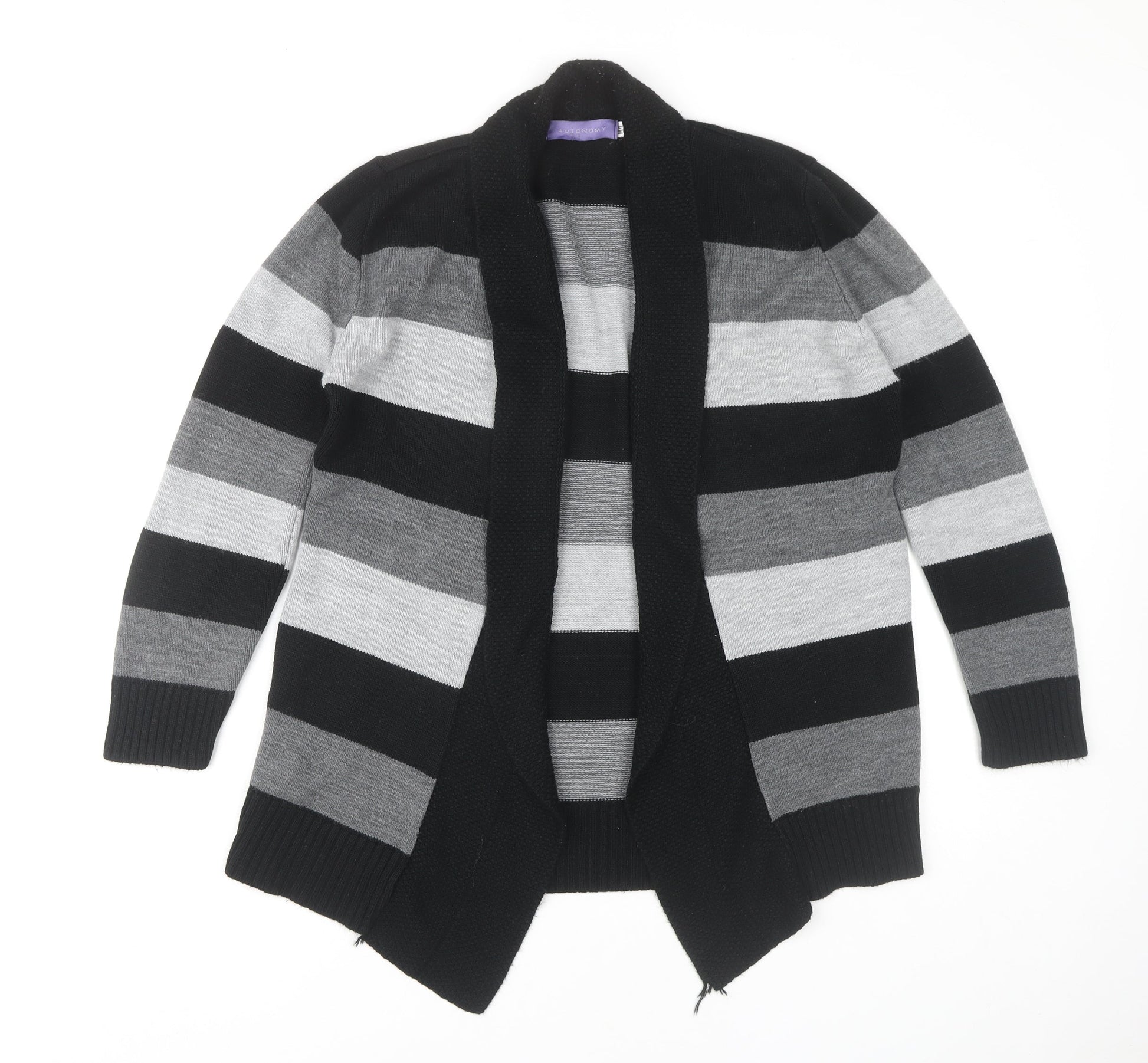 Autonomy Women's Black Open Front Cardigan M Striped Knit