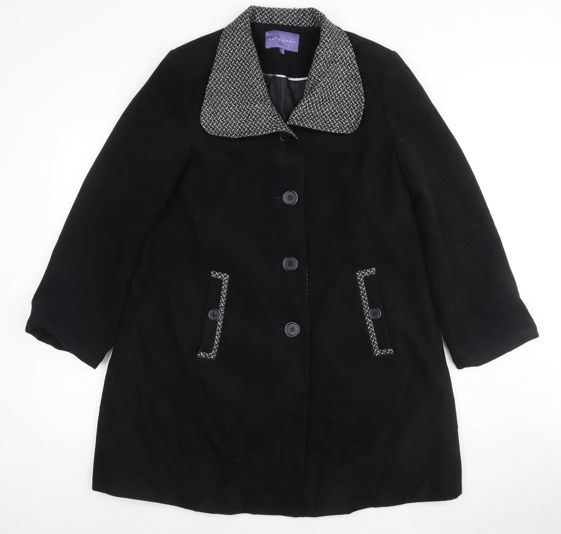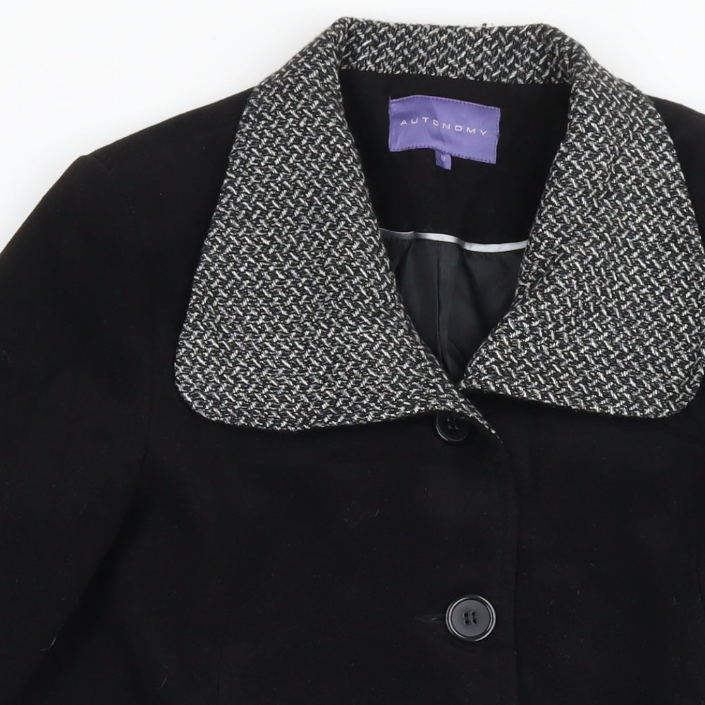 Autonomy Womens Black Overcoat Coat Size 12 Button