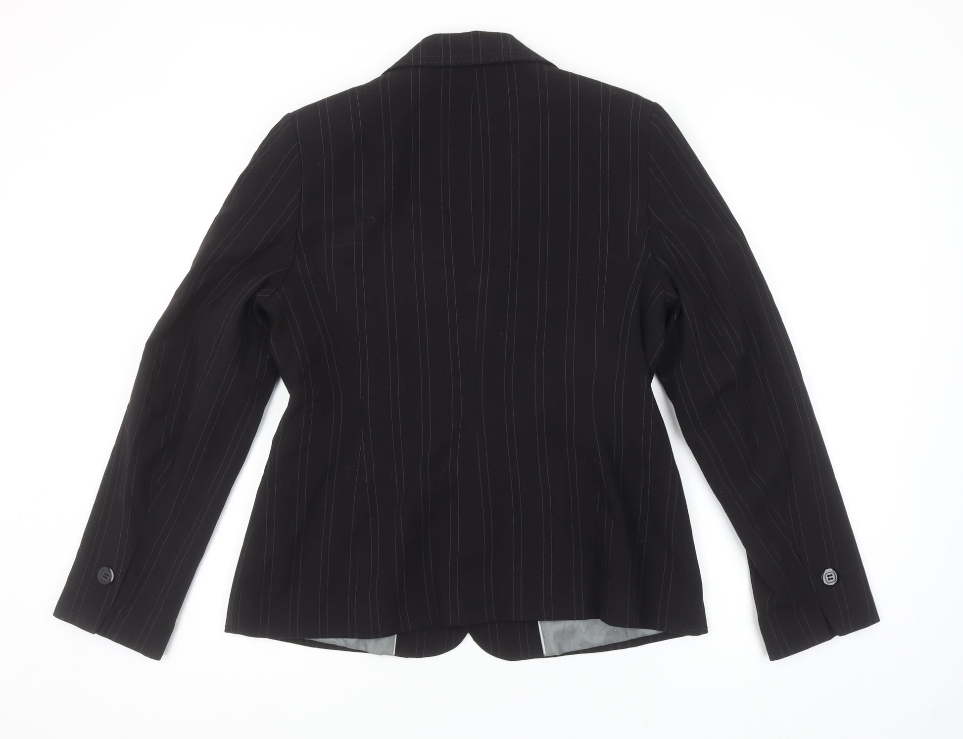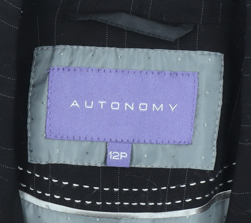 Autonomy Womens Black Pinstripe Suit Jacket Size 12P Classic Blazer